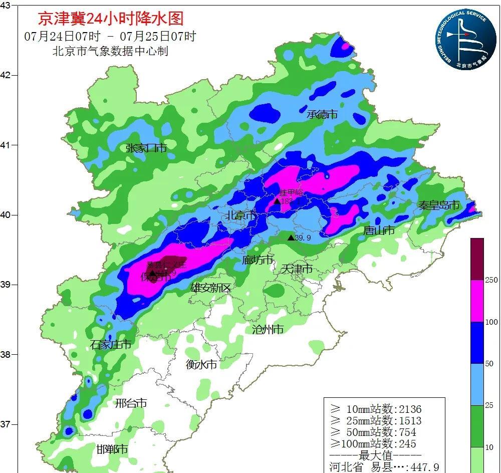 昨日今晨,西北华北北部以及东北地区部分区域出现分散性的大到暴雨,局部大暴雨甚至特大暴雨。而由于暖区对流降雨带导致的强降雨一度压过锋面切变降水带的势头,比如河北易县国家站点24小时雨量超过 300mm区域自动站点更是达到惊人的400mm以上! 同时在北京大部地区也出现大到暴雨,北京的东北部和南部局部也有100mm以上的区域出现,南郊国家站点逼近60mm,为暴雨量级。而在宁夏平原、陕北和内蒙古河套地区一带继续维持较强的降雨姿态,内蒙古多地也达到大暴雨量级。