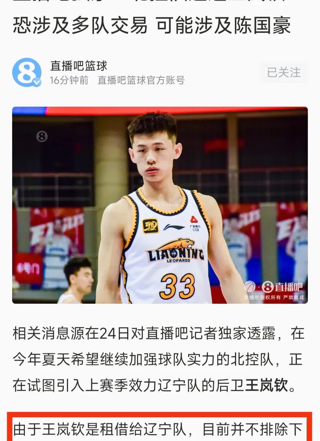 崔永熙是要加盟辽宁男篮了吗!给张镇麟当小弟,此计甚妙也,媒体报道:北控队追逐王岚钦,可能引发多队交易,可能涉及陈国豪!恕我直言,北控休赛期野心勃勃!休赛期蠢蠢欲动,还惦记王岚钦。 按理说:北控想得到王岚嵚,必然送出陈国豪,但同曦已经给祝铭震开出顶薪续约合同,锋线还有郭昊文,不太需要三四号位的陈国豪,而辽宁送走郭艾伦换王岚嵚使用权,小刘总可以➕现金去争取崔永熙,前不久,媒体人就曾透露小刘总和杨鸣去美国秘密接触崔永熙