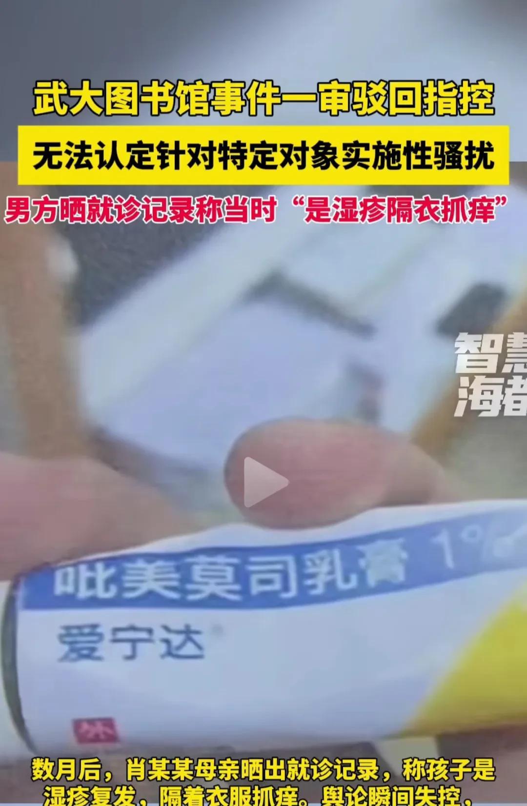 武大男生“隔衣搔痒”被指控性骚扰被驳回,男生遭网暴患上了创伤应激障碍,女人的迷之自信正在摧毁男人的自尊和心理安全感。 我就弄不清楚女孩杨某是咋想的,用手机伸向桌下,对着对面座位的肖某的裆部连拍5段视频,前后花一个多小时,按说这是侵犯别人隐私。男孩也没想到桌下这么隐蔽的三寸空间被人关注。 这说明,是女孩在关注男孩,是她自己思想不纯,一个多小时坚持拍5段视频,就是想拍点什么,证明她的美貌成为男孩的臆想目标,哪有心思看书,自信过了头也是臆想症。 男孩母亲提供了2020年之后与医护人员,药点,友人询问湿疹的聊天记录还有男孩隐私部位图片,包括事发当日,她曾委托友人顺便帮带儿子用的湿疹药膏,还有宿舍内室友上传的男孩未用完的药膏。以此证明儿子是得的湿疹,搔痒难耐,不由自主地想抓痒。 外院自行调取监控,认为无法证明性骚扰,女孩不相信外院的公平性,将视频和道歉信网上公开,舆论铺天而来,武大以对男生记过处分平息舆论,但未陈述具体违规违纪行为。 可见,女拳道德绑架太可怕,如果是男生偷拍女生隐私部位呢,气焰不敢如此嚣张。 女孩说男孩是故意坐在她对面,多次偷看她,她回看时男孩眼神躲闪。按这种说法就是认为男孩喜欢她。想多了吧,你不看他,你怎么知道她看你?无非是想确定男孩眼中有没有你,我这50岁老太,与陌生异性眼神近距离碰撞也躲闪,但真没想法。 男孩说是网上预约,随机派位的,每张桌上都有人,不管他坐哪一桌,对面都会有人。 自信过了头就相当于臆想症的一种病态意识,总是自认为推理别人的想法。 男孩母亲称,从小对儿子管教严格,与女同学发生纠纷,打架,无论对错回来都罚跪,高中到毕业都是家长接送,与社会几乎脱离,他根本不知道性骚扰的严重性。在一吓二诈下,为了息事宁人在女孩指导下修修改改写下了道歉书。 强势母亲出懦夫。男孩子不能约束太多,要认事,认对错来教导,不能一味的制约,男人要有些性格和魄力。 官司是赢了,都遭到了网暴,只是女生没想到将自己也套上。我认为男生的创伤会影响一辈子,造成这么严重的后果应该反追责,有的人就该为凭空想象付出代价。