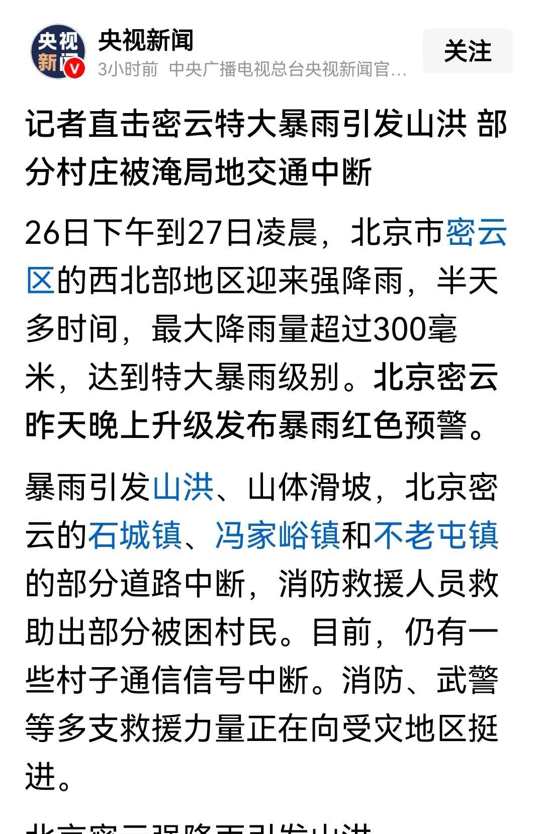 北京暴雨灾害今年发生在密云山区!大风大雨天气,大家注意安全!