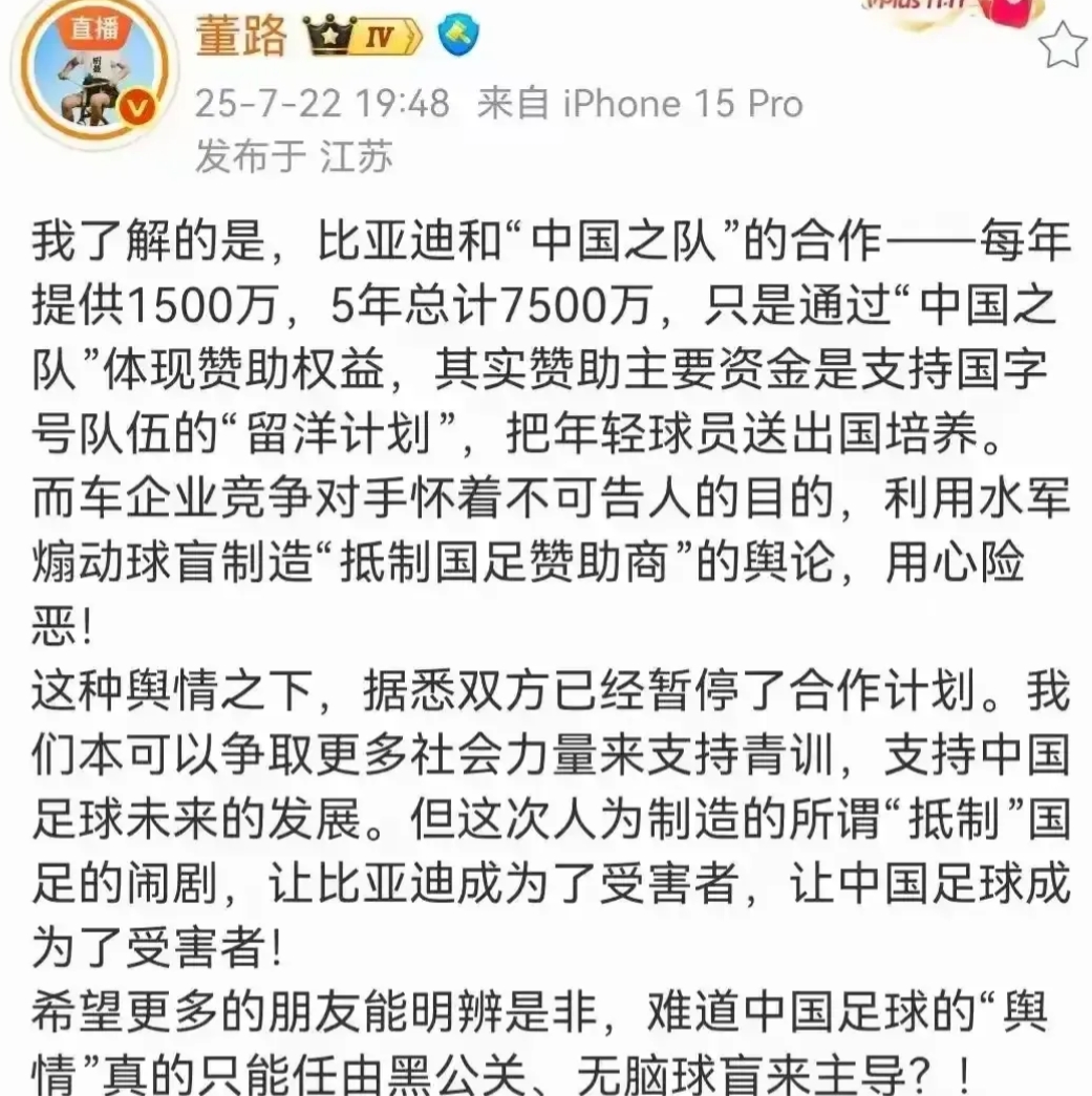 比亚迪赞助中国足球一事虽然暂时终止了,但这次事件分析下来不简单,简直可以说是细思