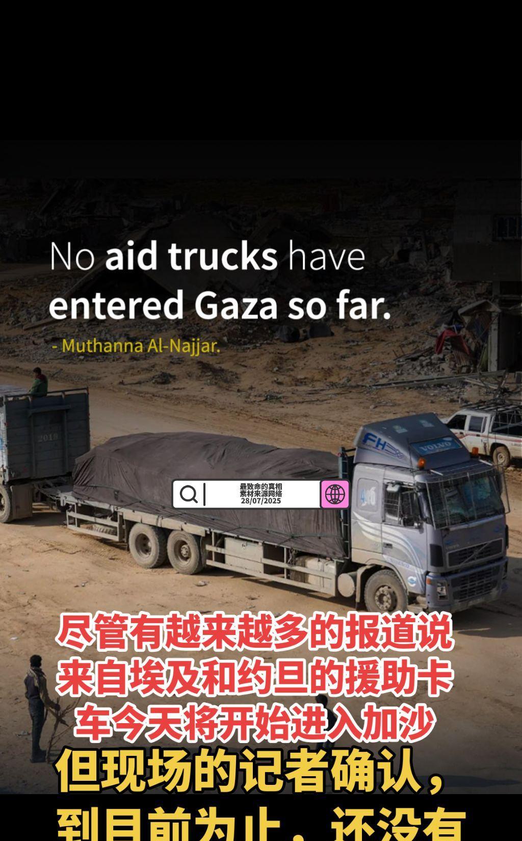 尽管有越来越多的报道说来自埃及和约旦的援助卡车今天将开始进入加沙,但现场的记者确认,到目前为止,还没有卡车被允许进入。 只有少数几辆载有有限面粉的卡车抵达了加沙北部的郊区,但没有一辆被允许进入人口稠密的深处;这远远不足以满足超过两百万面临灾难性饥荒的巴勒斯坦人的需求。#上热搜 #原创视频