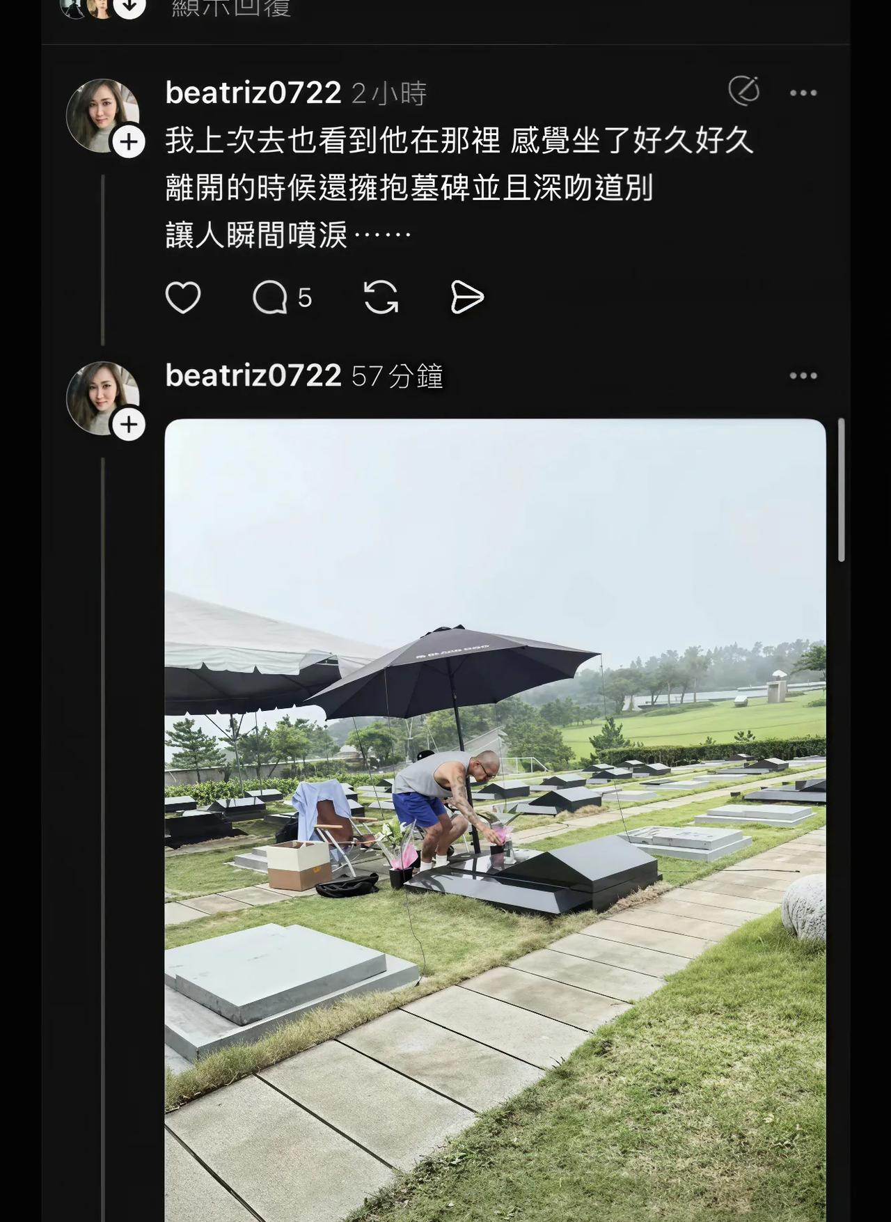 具俊晔也太深情了吧,抱着平板在大S的墓碑前看【流星花园】,这部剧是大S的巅峰之作。 墓碑前还摆着各种相片,还有放的碗,他在祭拜大S。 第一次看到现实生活中还有人那么深情,有点像韩剧的感觉,刚好又是韩国的欧巴,感觉有点不符合常理。 怎么说具俊晔也是56岁的人了,人生该经历的也经历了,一个50多岁的人竟然在这个年纪还变得如此的痴情,像二十几岁的小伙一样。 所以他应该是真的爱大S吧?#每天一句生活感悟# #大S# #具俊晔#