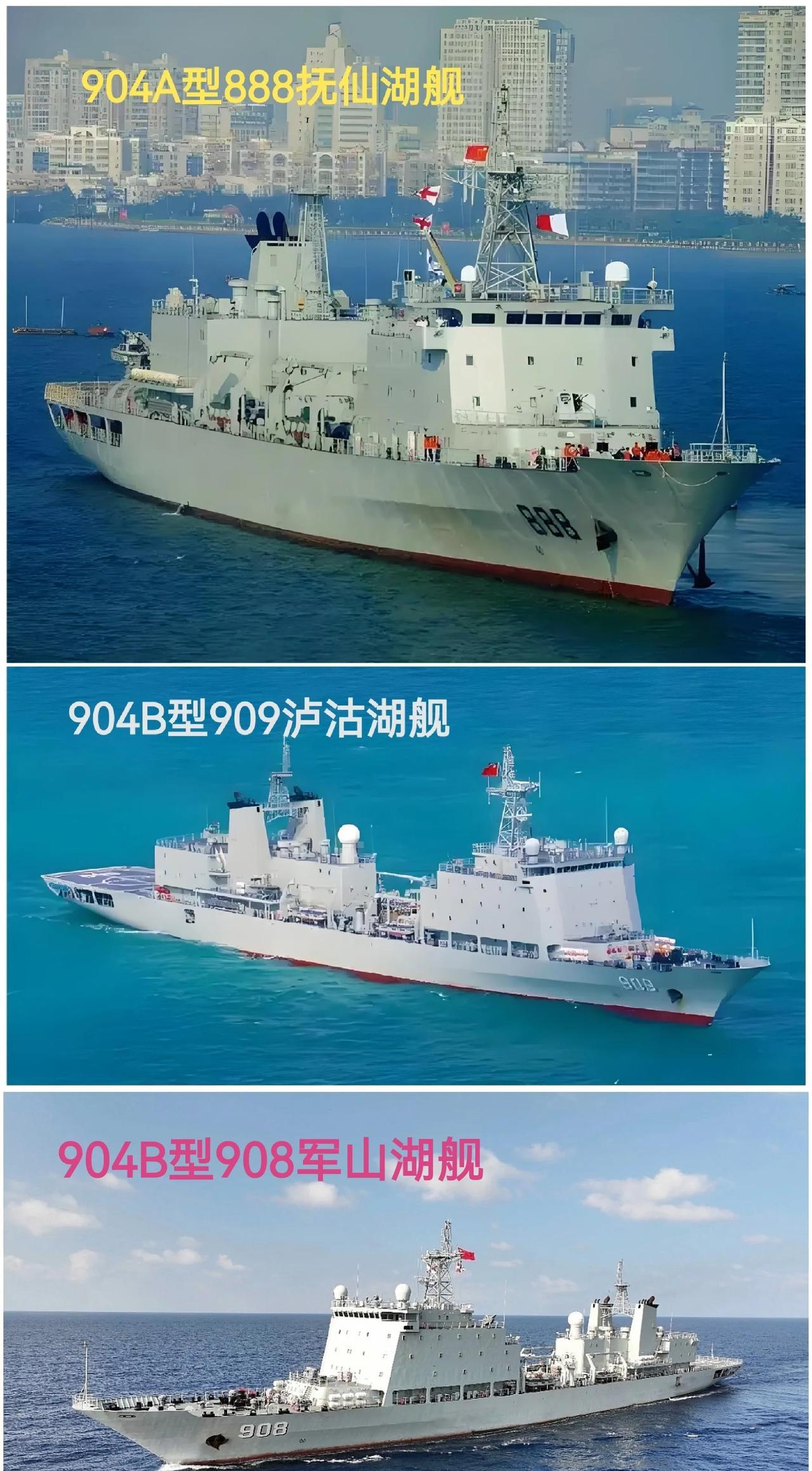 战争打的永远是后勤~人民海军的补给舰 ①901/A型:2艘(航母编队专用) 专为航母编队设计的5万吨级快速综合补给舰,目前有呼伦湖舰(舷号901)和查干湖舰(舷号905)两艘,满载排水量约4.8万吨,航速25节,可携带2万余吨补给物资。 定位为中型综合补给舰,用于驱护舰编队远洋补给,采用“高低搭配”策略与901型互补,现役11艘。 其中903型2艘(满载2.05万吨)、903A型9艘(满载2.3万吨),航速约19节,可携带1万吨燃油、250吨淡水及680吨干货。 ④904型系列:3艘(南海岛礁补给) ⑤908型:1艘(大型补给舰) 908型,则由乌克兰油轮改装而来,即青海湖舰(舷号885),满载排水量3.7万吨,航速16节,可携带9630吨燃油,配备6台吊车和4个油水补给站。 注~905型补给舰,一共4艘,出口一艘给了巴基斯坦,其余3艘都已退役。 目前美国海军的远洋补给舰,主要包括舰队油船(AO)、物资弹药船(AKE)、快速战斗支援舰(AOE)三种船型,总共32艘: 其中, 相比美国海军补给舰的数量来说,我们海军还处于弱势,但我们在全球海军来说我们排名第二。并近年在加大903A型补给舰的生产。 #补给舰# #补给舰的重要性#