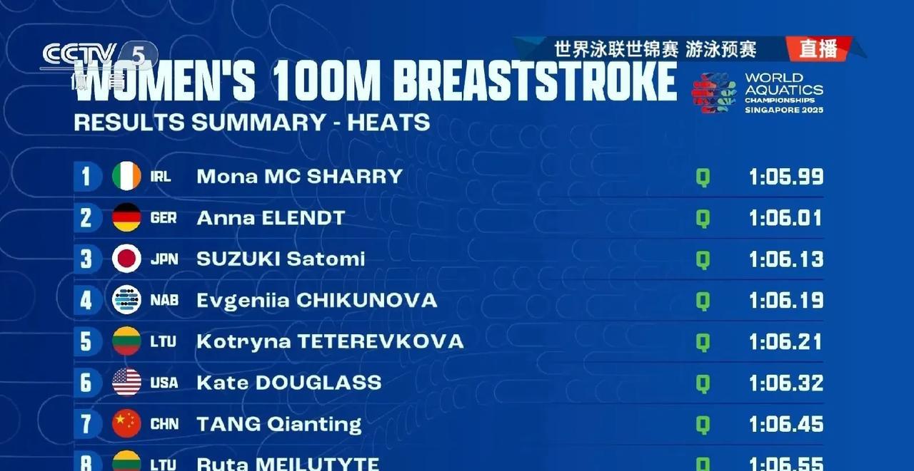 看唐钱婷在预赛的表现,明显是有保留的,她并没还有使出全力。 预赛就是正常游,找节奏,进入半决赛再说。半决赛再努力一把,保证进决赛。 决赛才是真舞台,按照她现在的状态,保三争一没有问题。
