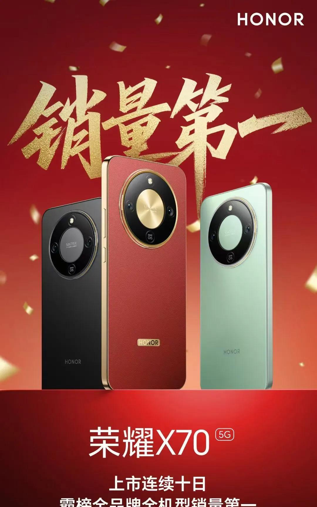 荣耀X70太猛了 上市也才十来天就已经连续十日霸榜全品牌全机型销量第一!就这实力