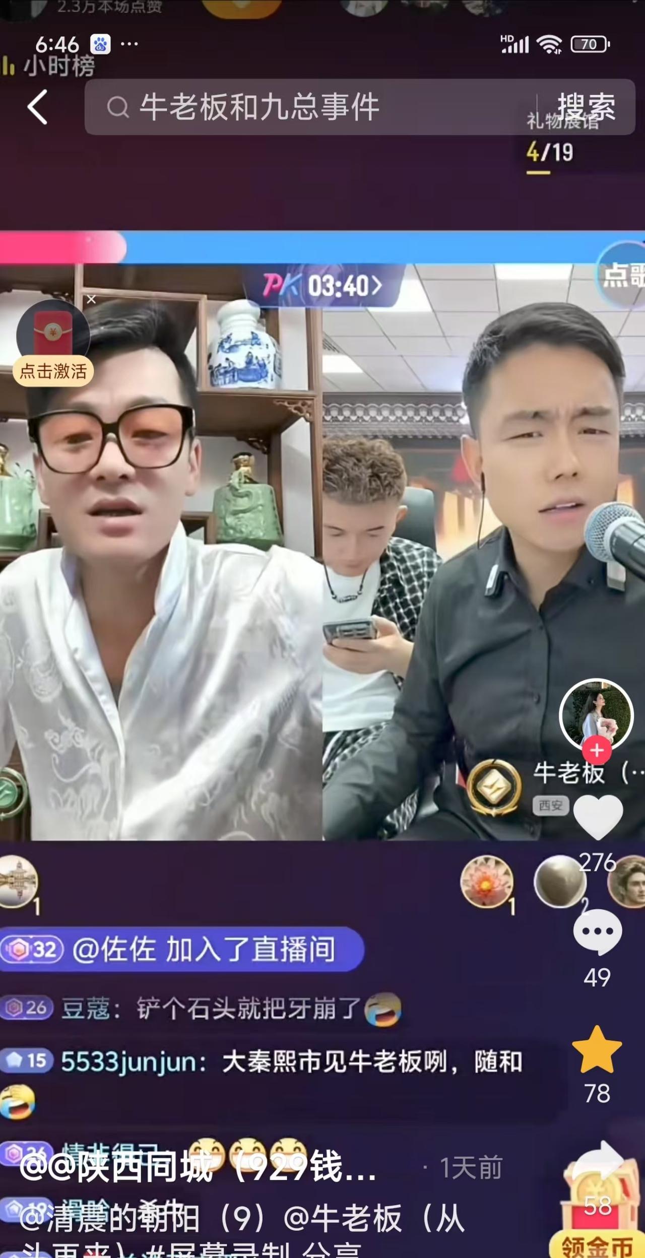近日,看到一个九总和牛老板的连麦视频,二人互怼,语言犀利,一个不服一个,九总相对言语温和,牛老板是口无遮拦,最终不欢而散,挂了麦。到底在同城里二人相比,是不是一个段位,谁影响大,真不好说。