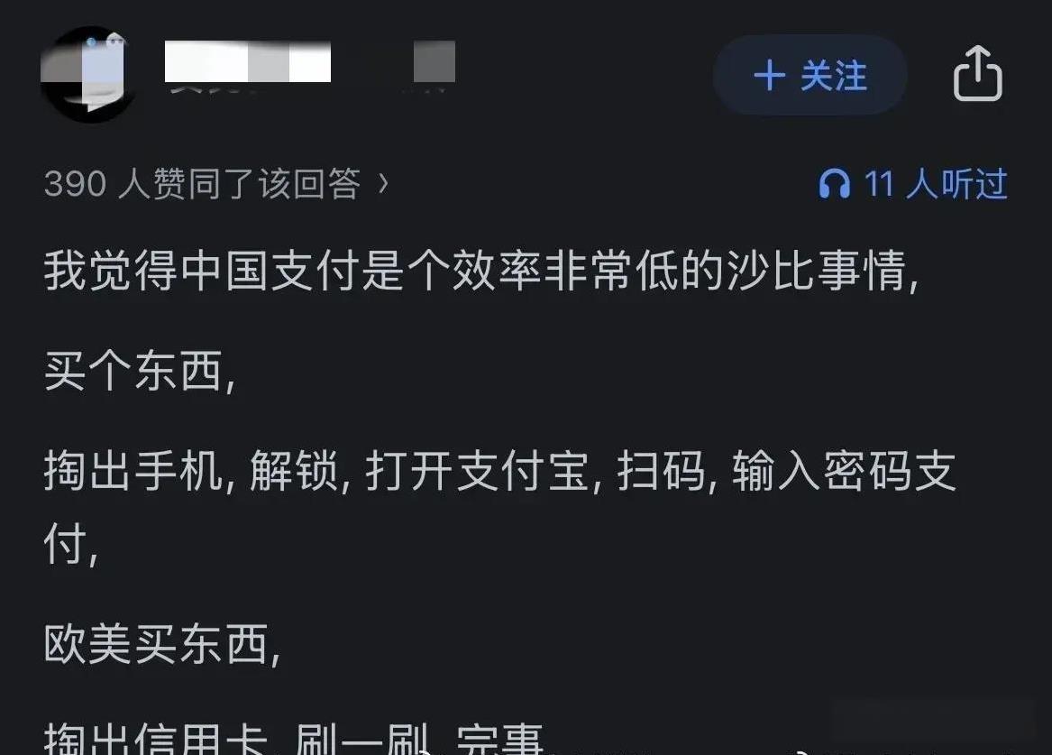 鹰酱:东大,你们家的那个手机支付太垃圾了! 东大:啥玩意,我们家的手机支付垃圾? 鹰酱:可不是嘛,一点也不上我们的信用卡好用,我们的信用卡一刷就完事,那叫一个方便! 东大:我们的手机支付也能一刷就完事呀,你怎么能说我们的手机支付垃圾呢? 鹰酱:你别跟我扯了,你们的手机支付效率太低了,买个东西需要手机解锁,然后打开支付宝,扫码,输入密码一整套流程下来才能完成支付,而我们的信用卡一刷就完事! 东大:我们的手机支付只要设置好了,也可以一刷就完事呀,而且我们都不用掏出手机,直接扫脸就行,乘公交、坐地铁、消费支付…简直不要太方便! 鹰酱:这些我们的信用卡也可以呀,有啥了不起的? 东大:那你们的信用卡能上网吗,能看新闻和视频吗? 鹰酱:这…当然不能了! 东大:我们只需要一部手机就能走天下,吃喝玩乐都能搞定,最主要的是还能上网聊天、刷视频、看新闻…你们的信用卡能吗? 鹰酱:这… 东大:这下还敢说我们的手机支付垃圾吗? 鹰酱:这…