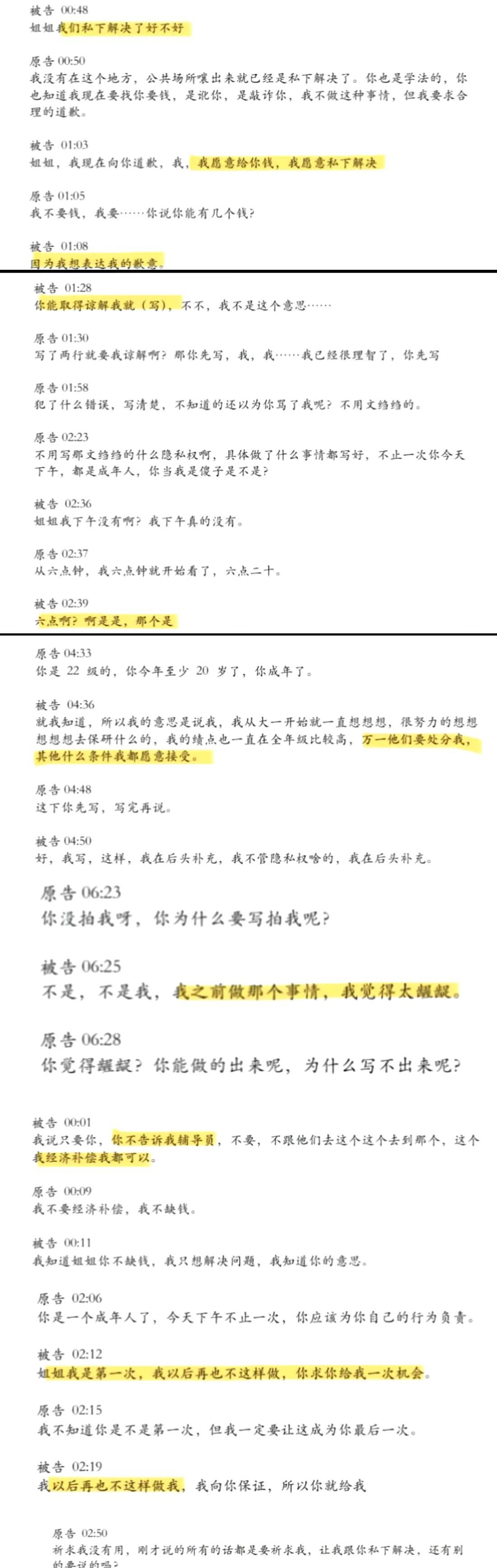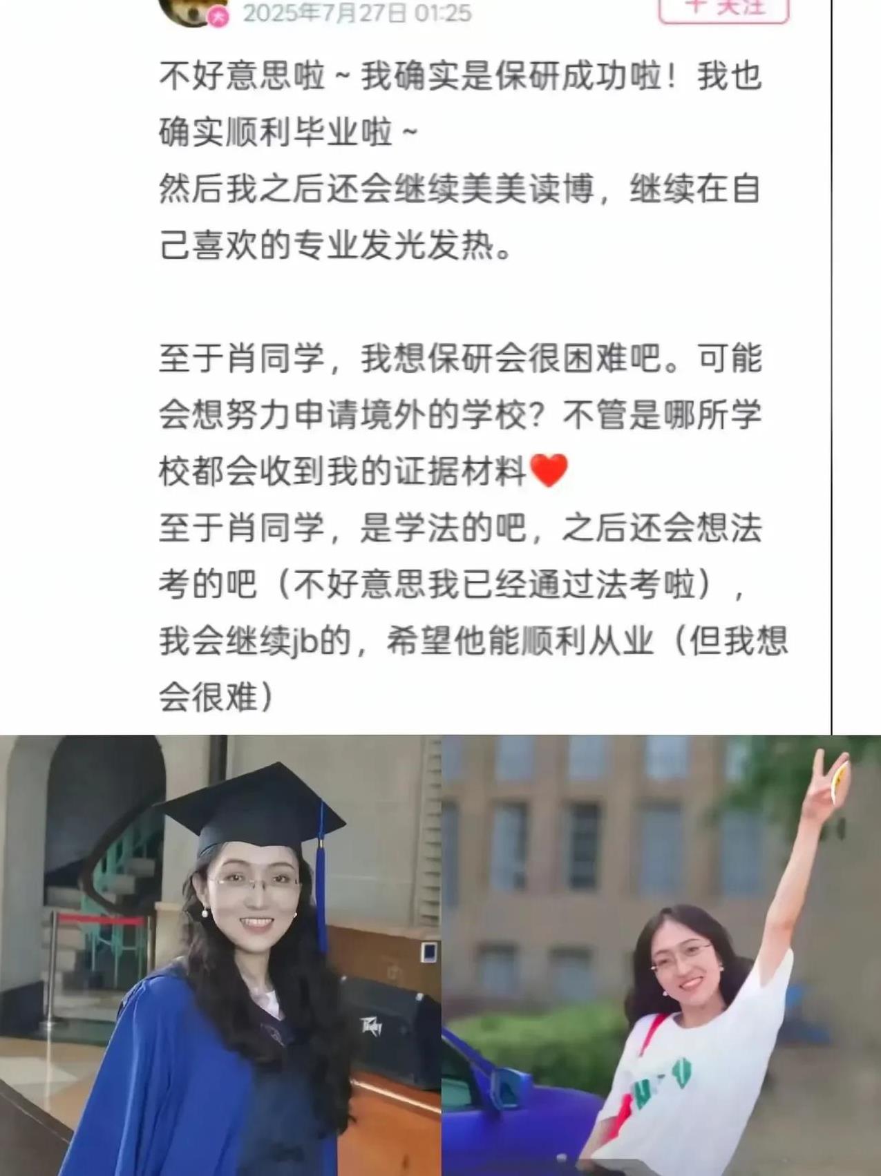 看了肖同学写的道歉信和事情的经过,以及用药诊断记录,包括这个杨同学和学校的监控视频,真的觉得这个事情就是一个巨大的误会,肖同学的性格和身体情况,造成了这个误会,但是杨某接下来的一系列动作让人更感到害怕,她是赤裸裸的踩着别人去往上爬,把这个事情当做“练练手”,当做自己不是好惹的女生的一个案例。 最关键的证据并不是这段视频,而是写的这个道歉书,至于为何写道歉书,肖同学自己也不知道犯了什么错,不过为了息事宁人,在女生的要求下写下了道歉信,这也成了他性骚扰的证据, 有了这个证据后,杨同学开始了“赶尽杀绝”,要求学校进行处罚,对肖同学最关心的保研和入党以及过奖等进行处理,处罚。 而且还发布到网络上,杨某确实是做的太绝了,是不给人留一点退路,这首先是一个“误会”,就是不是误会,一个大一的新生,按照规定和要求,要不能这么去做,到底是谁先偷拍的谁。 用她的话就是录制了一个小时,除了挠痒,干啥事能断断续续的用一个小时。 她在拿到毕业证后的第一反应就是双证到手,可以放心开打了,自己可以美美的读博了,把别人给弄得无路可走,自己这么精致利己,内心太自私和阴暗了。