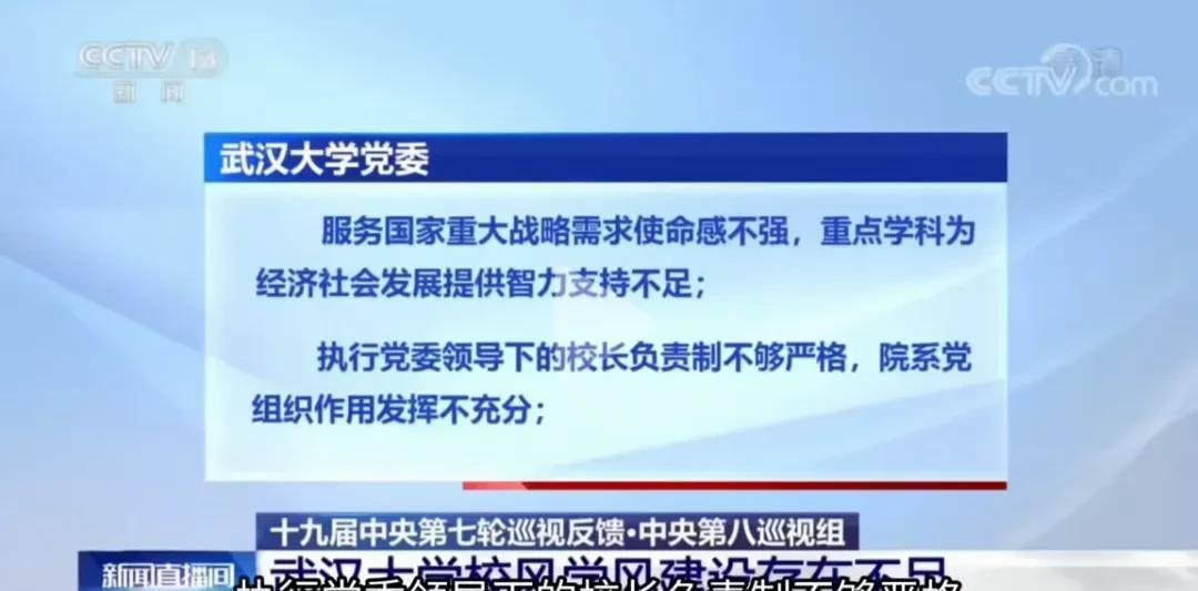 武汉大学校风学风建设存在不足。服务国家重大战略使命感不强,重点学科为经济社会发展提供智力支持不足;执行党委领导下的校长负责制不够严格,院系党组织作用发挥不充分。