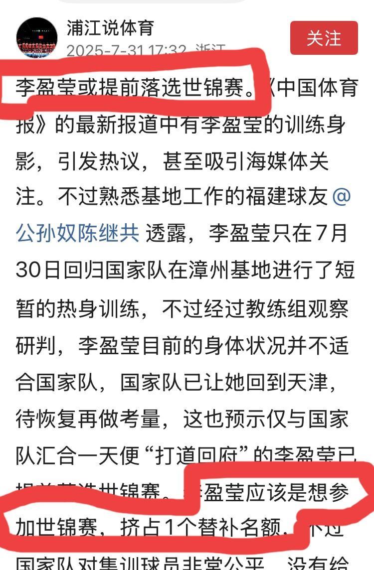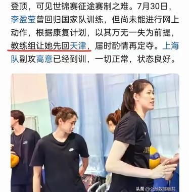 早先还在担心李盈莹过早归队的球迷们终于可以放心了! 李盈莹接到国家队的召唤,来漳州了,有图有真相的参加跑步训练,不过有传闻她因为伤情暂时不能适应国家队训练,又回天津了。这就说明8月份的世锦赛,李盈莹肯定不参加了。 可是,天津距离漳州,那可是千里迢迢,对一个脚伤没有痊愈的人,这么折腾来折腾去的,对伤情恢复百害而无一益,为啥不提前做好伤情评估呢,女排团队的这波操作,真是太减分了。 最令人气愤的是,这件事在哪个浦江的的笔下,以幸灾乐祸的口气说“李盈莹落选了世锦赛”,好像李盈莹特别想打世锦赛似的,也好像上赶着来似的,更好像天津女排担心国家队里面没有李盈莹的位置,前来占座似的,你说气人不气人?如果排协没有召唤,李盈莹在天津待着不舒服吗? 只能说排协做事情也太不周全了,简直是朝令夕改的做派,好像拿着这么严肃的事像过家家,如果一而再再而三的话,公信力可就丧失了。 还有一种解释,赵勇想让李盈莹回去继续养伤,赖亚文让李盈莹跟队训练,他俩在李盈莹的问题上产生了分歧。 如果李盈莹真回了天津,我支持赵勇!