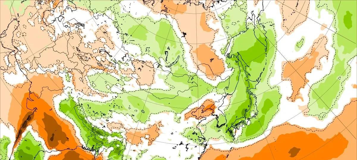 再来看看EC周报,调整幅度不是特别大。8月上旬,大陆高压和副高合并控制长城以南大部地区,主雨带依旧偏向西北内陆至内蒙古一带;而从中旬开始,基本是副高独当一面,588线北界的平均位置处在黄淮以南区域,脊位在30N附近,利于主雨带南移。 在降水距平上,中旬后期至下旬期间淮河以北包括华北南部黄淮地区的降水有持续增多的信号,并且延续至8月末。此外西风带整体有南压的趋势,东北内蒙古以及华北北部地区受到冷空气的影响力加大,气温整体水平有望降低一些。其他的模式新报即将出来,再等等看。