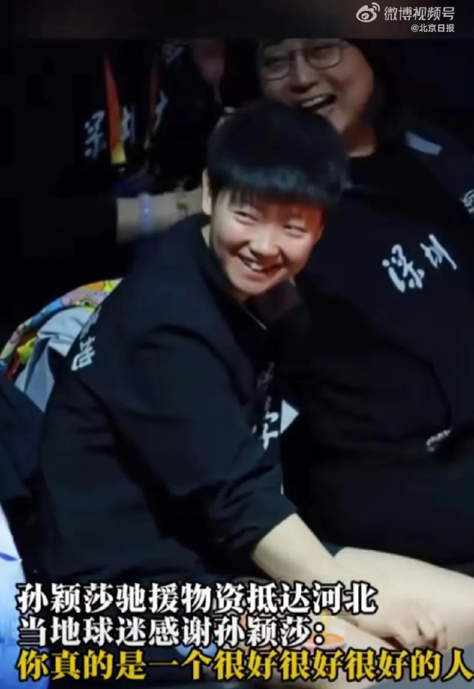孙颖莎捐赠物资抵达家乡河北, 灾区老乡收到后物资后, 纷纷发文表示感谢。 在官宣