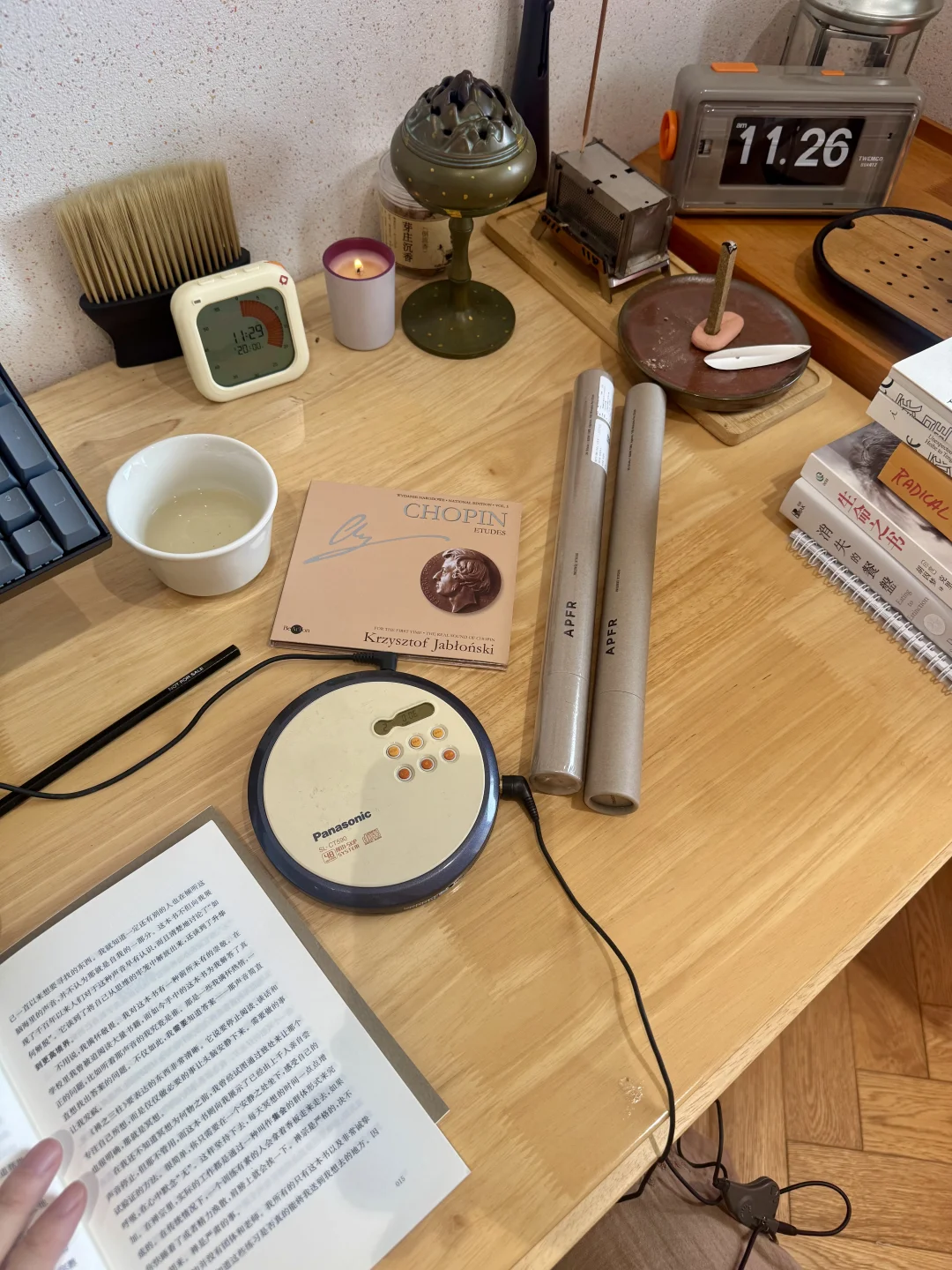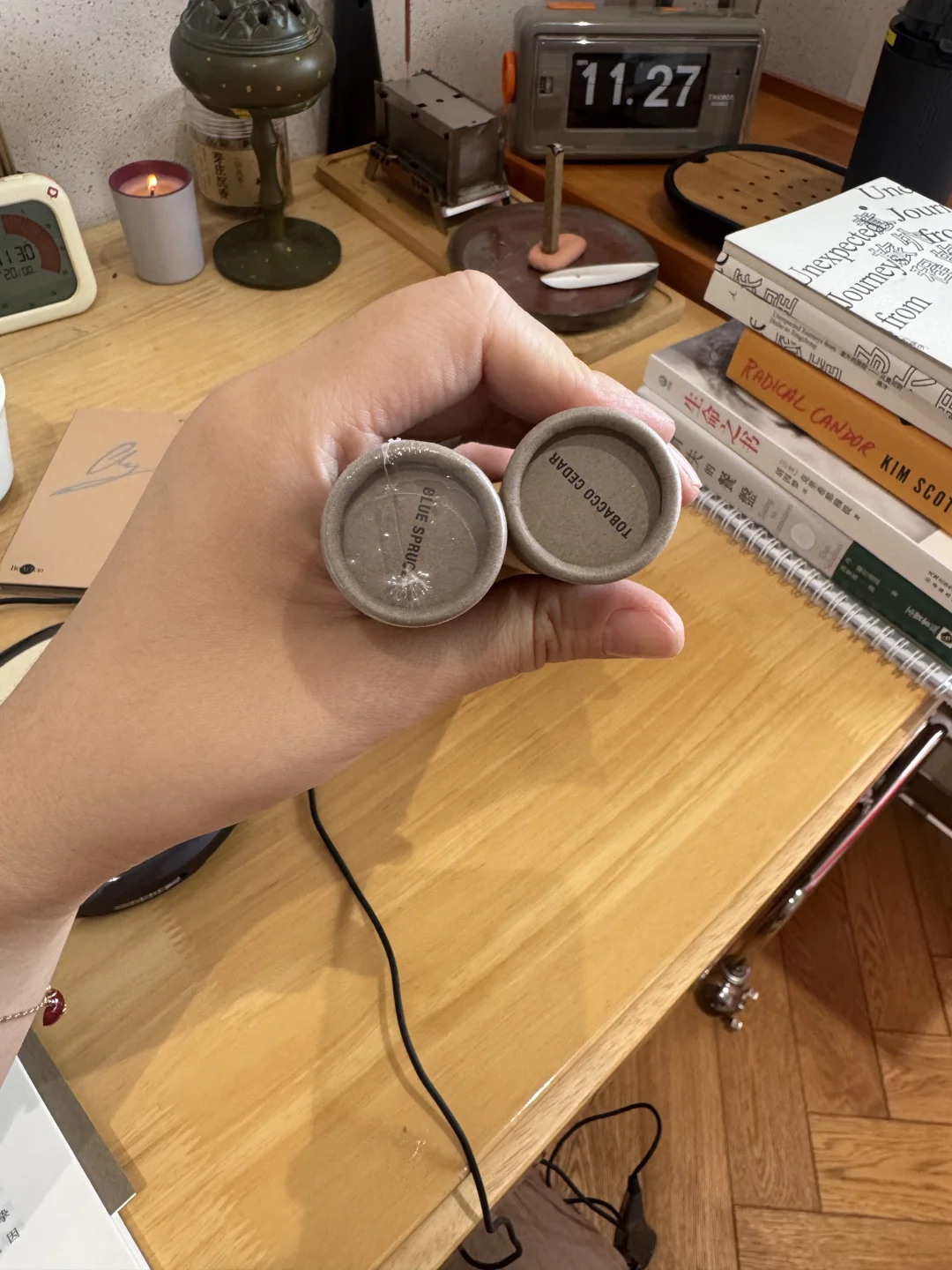 因为在波兰肖邦博物馆买了CD,所以翻箱倒柜去找我上学时候的CD机,然后发现了好多学生时代的宝物,CD打开甚至还是当时攒零花钱买的周杰伦[偷笑R] 在成都逛店的时候买了两支线香,APFR,是一个京都的品牌,很润,不会有很强的烟感。在成都一个买手店买的,当时在那闻了好久,Tobacco Cedar是暖调的木质系,偏一点点甜肉桂,Blue Spruce是清冷调的雪松,更冷静一点。