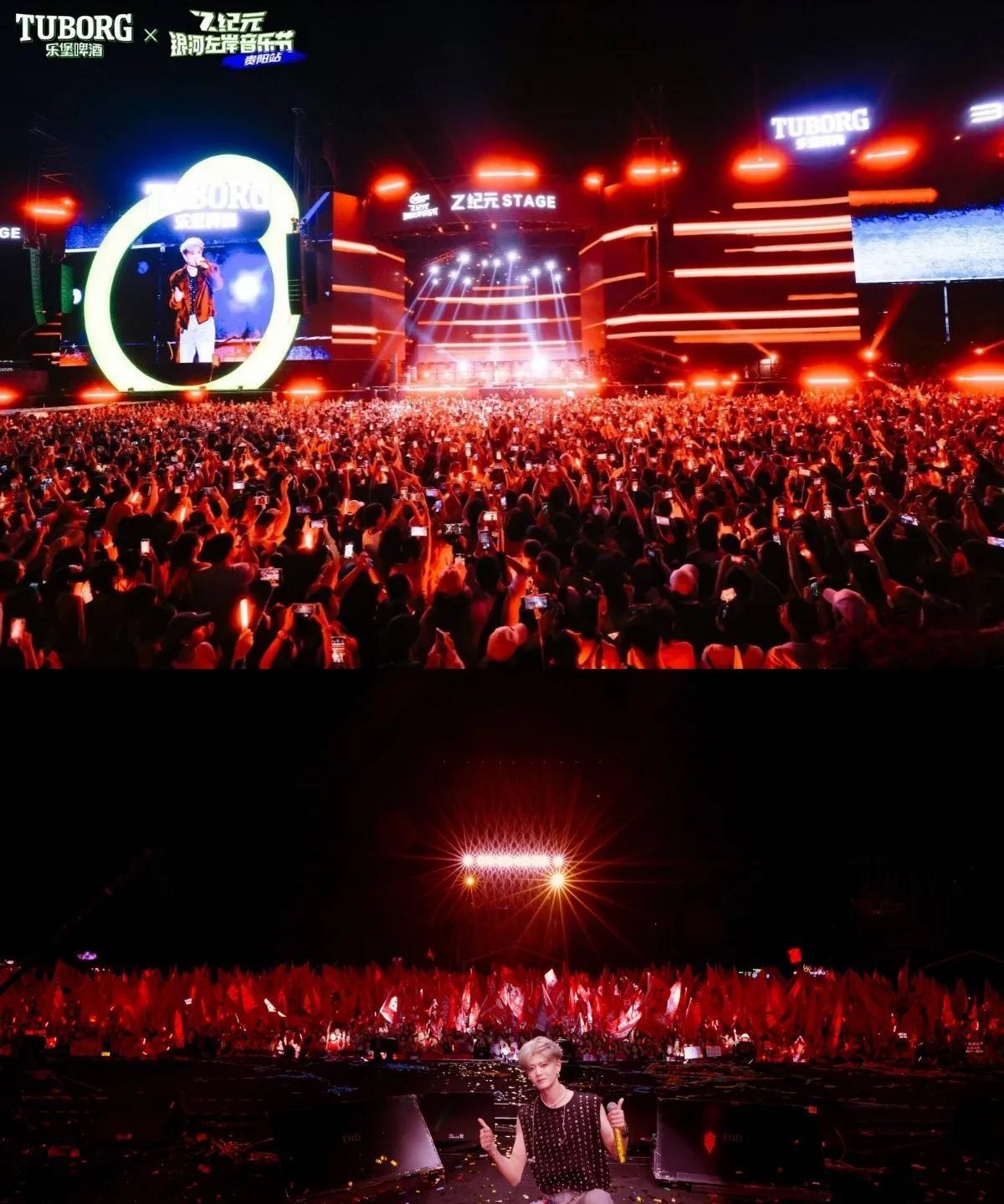 原来任嘉伦和梓渝参加的是同一场音乐节, 不过梓渝是青涩开场,任嘉伦是压轴辉煌! 等到任嘉伦出场时, 全场气氛瞬间燃到顶点! 他唱跳俱佳,舞台表现力炸裂, 整个人都在闪闪发光,魅力四射! 看那片红色应援旗的海洋, 连我这个路人都被震撼到了! 任嘉伦不仅演员事业风生水起, 现在连歌手身份也游刃有余了呢!