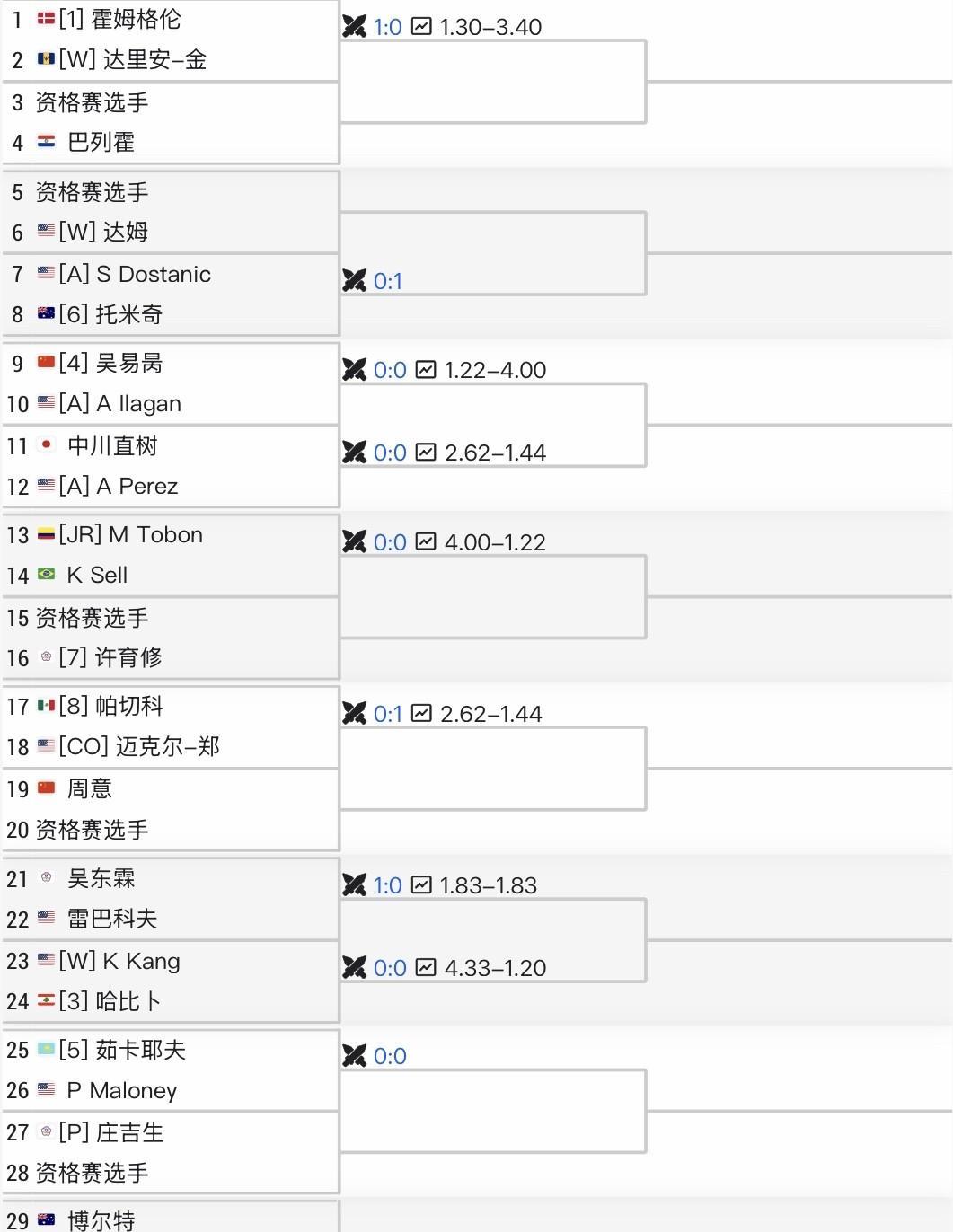 CH75芝加哥挑战赛签表出炉!中国球员2人参赛,吴易昺有望直通四强!(附详细签表