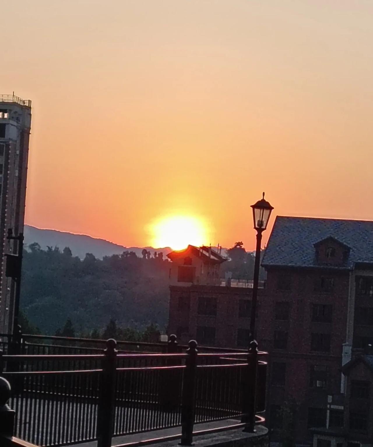 昨晚,西边的太阳就要落山了,但此时特别美。很有诗意的时候,我用一句话赞美落日。