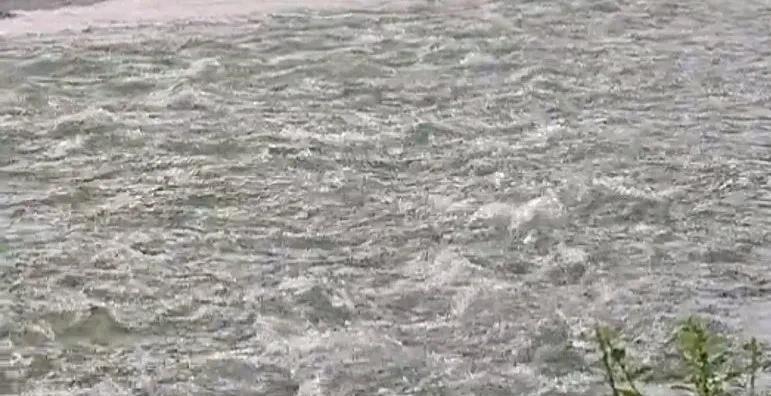 中伏时节黄壁庄水库放水,滹沱河顿时热闹起来,河水泛起层层浪花。