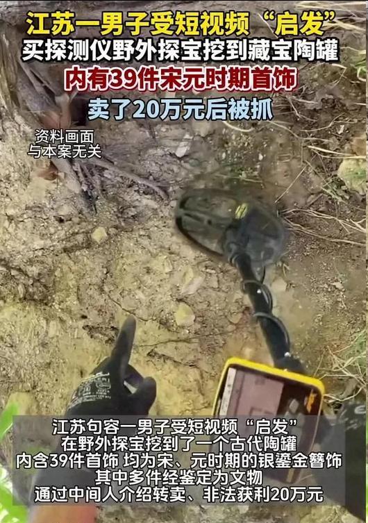 “到嘴鸭子的飞了!”江苏句容,一男子花1000元买了个探测仪,学着短视频到野外探宝,令人万万没想到,其在村边干涸的水库中挖出一个陶罐,里面有39件银鎏金簪子首饰,全是宋元时期的文物!其中二级文物4件、三级文物6件,他以20万元的价格打包卖出,岂料,钱还没有暖热,就被警方抓捕,以涉嫌倒卖文物罪被起诉,法院这样判了! 8月1日报道,江苏句容有个姓刘的男人,最近因为一场“寻宝梦”栽了跟头。 说起来,这事儿还得从他刷短视频说起。 现在网上流行一种野外探宝的视频,视频博主拿着个探测器在荒郊野岭转,时不时挖出点“宝贝”,看得人心里直痒痒。 刘某某就是看了这些视频,动了心思。 他花一千多块钱网购了个金属探测器,也想试试能不能撞上大运,发笔横财。 去年赶上水库枯水期,水位降了不少,河底都露了出来。 刘某某扛着探测器就去了,在淤泥里扫来扫去,没想到仪器真响了。 他赶紧往下挖,挖出个裹着青苔的陶罐。 打开一看,里面装着三十多件金灿灿的首饰,看着就有些年头。 换作别人,说不定会琢磨这是不是文物,该上交国家。 可刘某某满脑子都是发财,他联系上以前在古玩市场认识的沈某某,俩人合计着把这些东西卖了。 为了掩人耳目,还编了个“家传宝贝”的幌子,打包卖给了浙江一个老板,总共卖了二十万。 刘某某自己拿了十八万多,给了沈某某一万八千八的好处费。 钱刚到手没俩月,今年二月,警察就找上了门。 刘某某被抓了,沈某某后来自己去自首了,那些首饰也全被追了回来。 专家鉴定后说,这些都是宋元时期的银鎏金簪子,里面四件是国家二级文物,六件是三级文物,剩下的连同那个陶罐,也都是受保护的一般文物。 办案的时候,有个关键问题得弄清楚:刘某某挖东西的水库底,是不是受保护的古遗址? 这关系到他是犯了更重的盗掘古墓葬罪,还是倒卖文物罪。 警察带着无人机去现场拍了又测,最后确认那就是个普通水库,没有古遗址的痕迹。 法院最后判了,刘某某犯倒卖文物罪,判五年,罚金三万,沈某某判三年,缓刑四年,罚金一万。 要说这事儿,刘某某也是被那些探宝视频给带偏了。 现在网上好多这种直播,拿着探测器在野外转,挖着点东西就大呼小叫,好像谁都能靠这个一夜暴富似的。 可他们不想想,地里挖出来的老物件,能随便卖吗? 而且网络视频真真假假,探宝博主挖出来的宝贝,说不定是头一天晚上埋进土里的。 法律上早有规定,咱们国家境内,地下、河底、海里挖出来的文物,不管是谁挖着的,都归国家所有。 别说倒卖了,就是自己藏着不上交,都可能犯法。 像刘某某挖出来的这些,有二级、三级文物,属于国家重点保护的,这一倒卖,性质就更严重了。 而且,他们交易的时候还编瞎话,说是“家传的”,明摆着知道这些东西见不得光。 这种情况下,就算嘴上说不知道是文物,法院也能认定他们是“明知故犯”。 其实,类似的事儿不止这一起。 湖北当阳有个姓王的,也是看了探宝视频入了迷,花八千多买了工具,半年里偷偷挖了二十多次,最后也被判刑了,拘役四个月,缓刑五个月,还罚了三千块。 这些人总觉得自己运气好,能神不知鬼不觉地把东西卖了换钱。 可现在技术发达,警察用个无人机拍拍照、分析分析数据,就能弄清楚现场情况。 想靠钻空子发这种财,基本上是行不通的。 再说那些被挖出来的文物,价值可不止是能卖多少钱。 专家说,刘某某挖出来的那些簪子,上面的花纹特别讲究,能看出宋元时期的手工艺水平,有些纹路连史书上都没记载过,对研究当时的历史文化特别有意义。 现在这些文物已经放到博物馆展出了,成了大家都能看的宝贝。 可要是被私下里卖来卖去,说不定就会损坏,或者流落到不知道哪儿去了,多可惜。 有人说,要是刘某某当时挖出来就上交,不仅不用坐牢,说不定还能领点奖金。 以前就有村民挖着玉器主动上交,后来领了奖,还上了当地新闻。 一样是挖着东西,选择不同,结果天差地别。 现在,那个水库边上已经立了告示牌,当地警察也加强了巡查。 专家团队还在那一片系统勘探,说可能还有更多文物埋在底下。 刘某某的案子也成了当地的普法教材,学校组织学生去博物馆参观,都会讲讲这事儿,提醒大家别犯同样的错。 说到底,天上不会掉馅饼,地里挖出来的“宝贝”,也不是谁都能随便拿的。 一时贪心,可能就得付出好几年自由的代价,这笔账怎么算都不划算。 #MCN双量进阶计划#