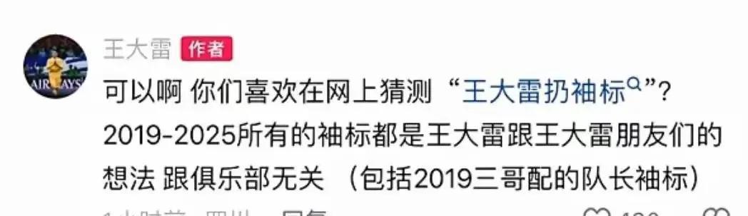 王大雷道歉了,这哪是道歉,分明是给自己找借口,视频非常清晰,这就是扔队长袖章,王大雷经历这么多,国家队里的那些不好的东西是去不掉了。 球迷一直没有辜负王大雷,而王大雷却一直辜负了球迷,谁愿意陪你一起承受失败?这么多年竟是失败了,不在自己身上找原因吗?