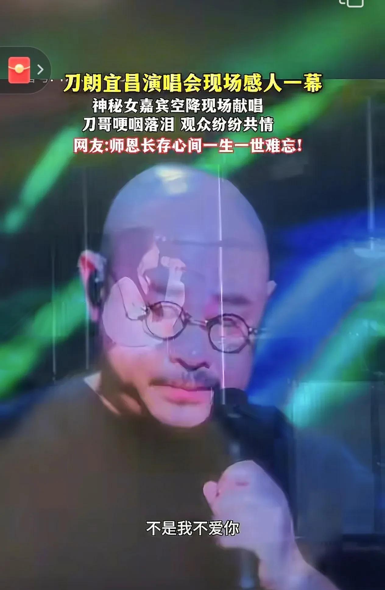 刀郎宜昌演唱会的舞台突然亮起一束追光,神秘女嘉宾的身影浮现时,全场瞬间屏息。当熟悉的旋律流淌,她开口的瞬间,刀郎握着话筒的手微微颤抖,眼眶渐红。 音符里藏着的师徒情谊,在他转身拭泪的刹那彻底破防。观众席的啜泣声此起彼伏,荧光棒的海洋里,有人举着“师恩永铭”的灯牌。 “这辈子没敢耽误你,下辈子慢慢陪你唱”——一句歌词落下,刀郎的哽咽成了全场的共情点。网友说,这泪里藏着的,是刻进骨子里的尊重与念想。#明星# #刀郎# #娱乐圈# #娱乐圈每日热议#