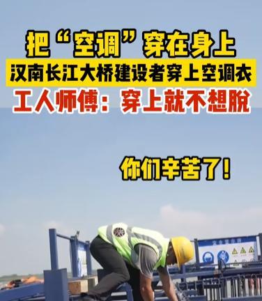 “户外工人有福了!”湖北武汉,工人们正在顶着38℃的高温天气建设汉南长江大桥,但是他们却感觉体感只有28℃,原来是因为他们每个人都穿上了空调衣,是老板免费发给他们的,工人反映穿上空调衣就不想脱了,太凉快了! 8月4日,据新华社报道,在武汉38℃高温下,汉南长江大桥的施工现场依旧热火朝天,烈日炙烤下的钢筋水泥让人喘不过气,可现场的工人们却显得从容许多。 他们没有汗流浃背、频频擦汗的窘迫,也没有因高温而动作迟缓,原因很简单——每个人都穿上了由公司免费配发的“空调衣”。 这件看似普通的工作服里,暗藏着不小的科技含量,启动开关后,内置的微型风扇随即运转,迅速将热气带走,将汗水蒸发,给身体带来一阵阵清凉。 即便在超过38℃的酷暑下,工人的体感温度也能维持在28℃左右,大大缓解了夏季施工带来的不适,许多工人直言:“穿上之后就不想脱下来,真的是太凉快了!” 不仅降温效果显著,这种空调衣重量轻、操作简便,几乎不会对正常作业造成影响,风机的位置和风力大小都经过专门设计,确保长时间穿着不会有负担。 工人们在高温下依然能精神抖擞地工作,不再被酷暑困扰,不但保障了身体健康,还提高了工作效率。 这种贴心的装备,不仅是一件降温工具,更是一种温度的传递,它体现出企业对员工身心健康的重视,也让工人们真切感受到被关心、被尊重,比起喊口号式的“关爱”,这类实实在在的举措更能打动人心。 工人师傅们身穿空调衣,顶着烈日作业,汗水少了,精神足了。凉爽的不止是身体,更是内心的安稳与踏实。