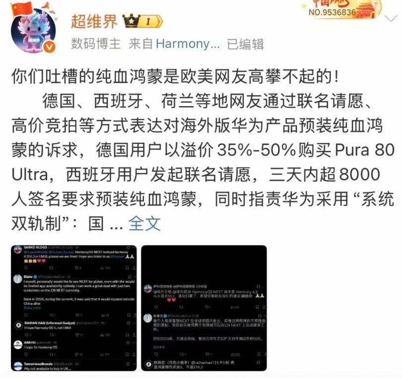 纯血鸿蒙next这么抢手?华为牛啊,很多外国用户都想购买纯血鸿蒙版本!