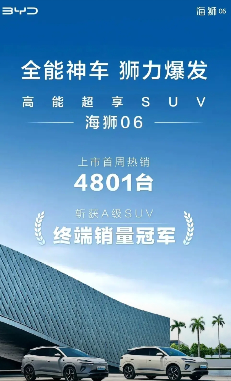 海狮06拿下A级SUV销冠了。 比亚迪对车型的定义也怪怪的。 06是A级SUV,