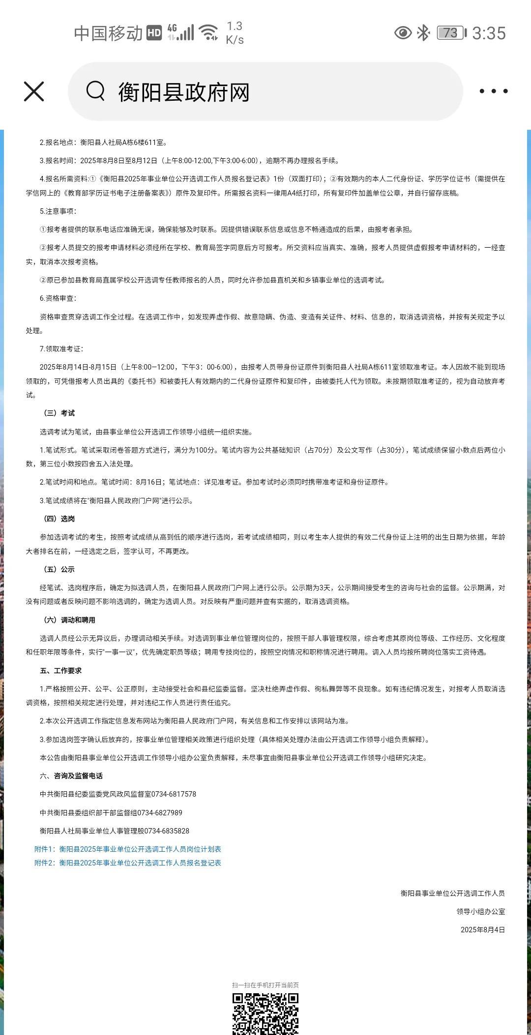 一个县230名教师转岗! 8月4日,湖南省衡阳县人民政府门户网站发布了一则《衡阳县2025年事业单位公开选调工作人员公告》,准备从全县中小学教师队伍中选调230名教师到事业单位! 一次性选调230名教师,对于一个县城来讲确实是比较多,当然衡阳县也是一个人口大县,户籍人数将近120万。事实证明教师转岗潮已经开始了,一年就剩余两百多名教师,3年5年后呢? 根据今年一年级招生人数看,部分学校一年级入学人数比往年少了一半,一年级教师人数明显有剩余。因此有些地方转岗形式就是从低学段转岗上高学段,比如江西赣州。不管何种形式都充分证明,教师剩余的趋势将无法阻挡。老师们也要做好双手准备,当自己优秀了就有了选择权,你可以选择留在教师岗位也可以选拔到其他事业单位!#教师转岗# #教师选调流程# #湖南教师选调#