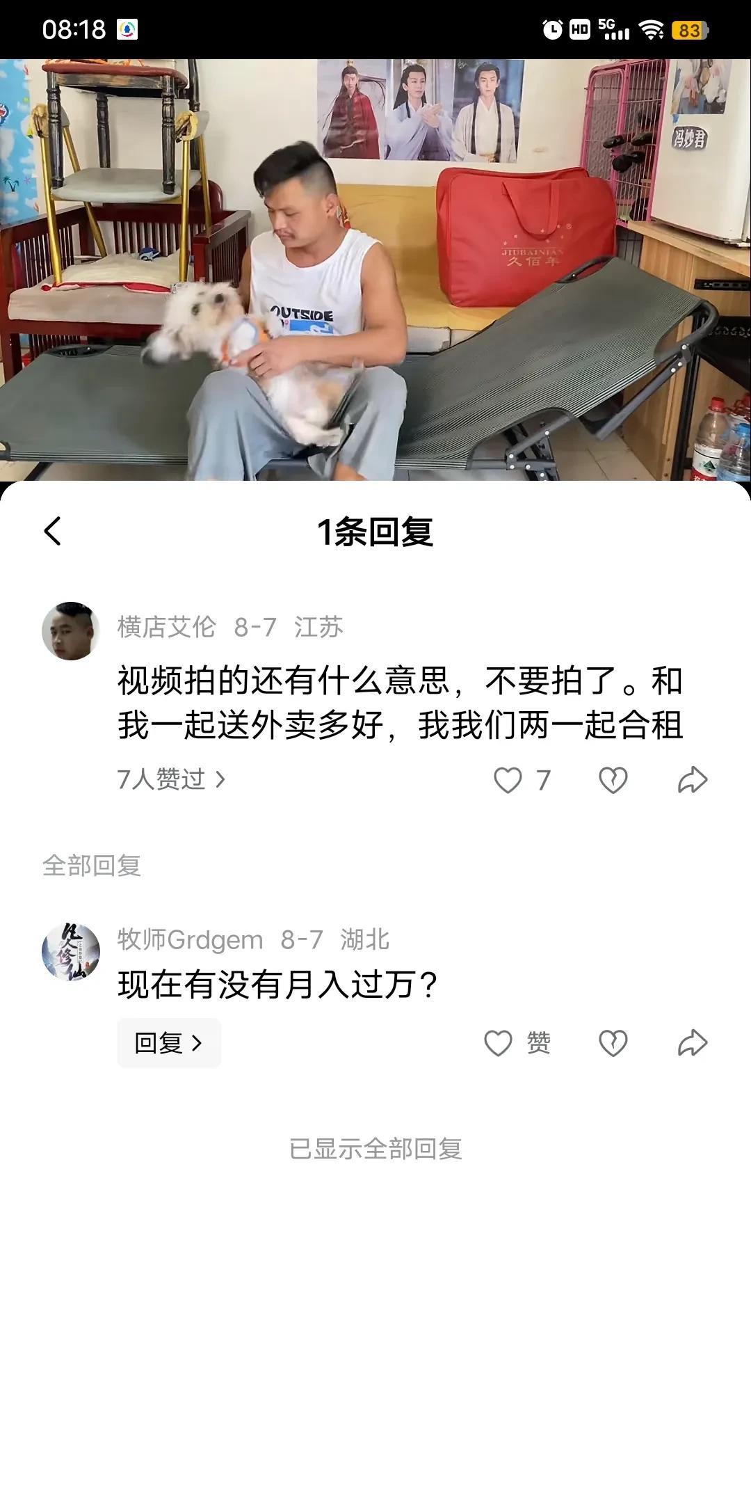 莫山炮还清网贷准备回广西,艾伦邀请山炮一起送外卖。 莫山炮准备回老家广西,现在正纠结用哪种方式返程,如果骑摩托回去,可以把猫狗都带回去,如果坐火车,那猫狗就需要委托别人照顾,每天需要花费30块钱的照管费。山炮目前在横店每个月大概有六七千块钱的收入,已经把网贷的几万块钱还清了,也把朋友借的还得差不多了,手上还留了一些存款,所以想回去看看。在山炮的视频评论区,他以前的最佳损友——艾伦竟然现身了,艾伦说:“视频拍的还有什么意思,不要拍了。和我一起送外卖多好,我们俩一起合租”。估计艾伦现在也能吃上饱饭了。 有没有人知道,莫山炮怎么欠下这么多债务啊?有的还是网贷,他怎么搞的。 (图片来源于网络,侵删)