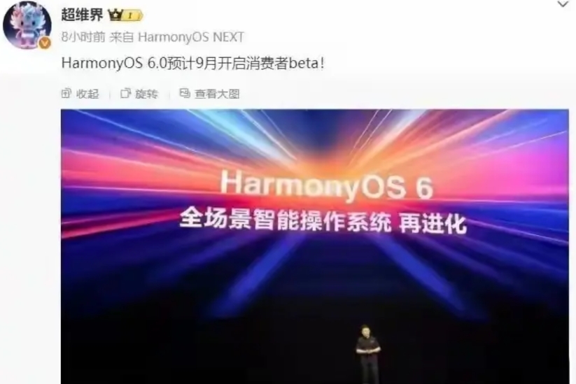 鸿蒙6.0系统又有新消息了 前一段时间,鸿蒙5.1系统开始大面积推送了,随着各个应用不断优化,完善功能,鸿蒙系统的使用体验再上一个台阶,紧接着鸿蒙6.0系统开发者测试第二阶段开始了。 近日,又传出好消息,那就是鸿蒙6.0系统预计9月份开始消费者beta版本的测试,届时将开放部分消费者进行鸿蒙6.0系统的测试。鸿蒙6.0才是真正从底层接入AI的万物互联的操作系统,实现更加安全、更智能、更加聪明。