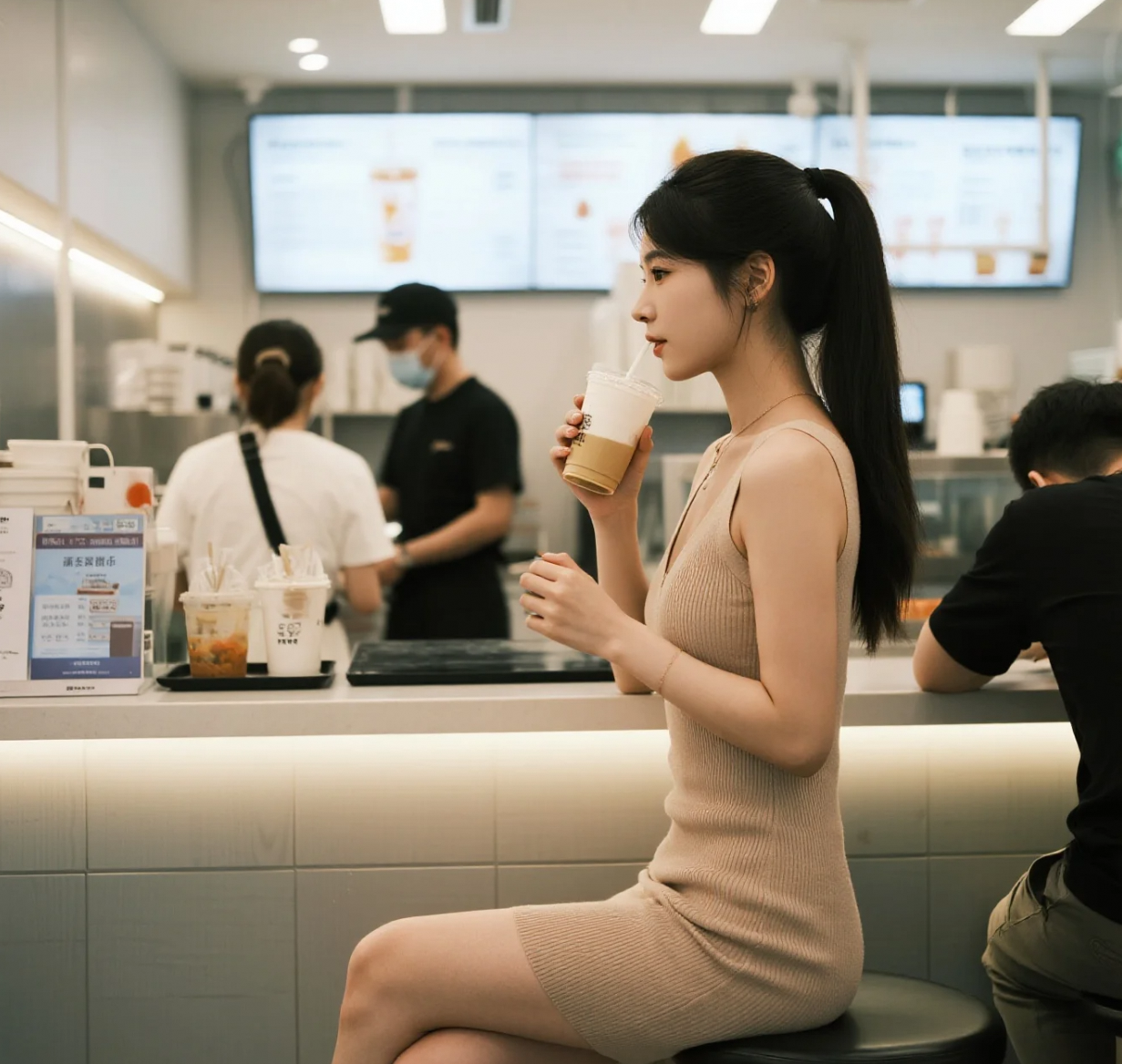 小姐姐与奶茶的浪漫邂逅
