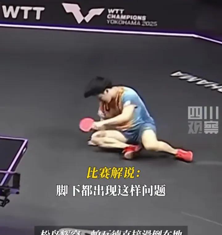 莎莎有个比赛动作差点被滑倒。大家还以为莎莎极限救球。日本横滨比赛地胶确实打滑。其他运动员三四个都被滑倒了。连解说也说不是鞋的事。这可太替运动员担心了。一个不小心也可能滑倒拉伤。真的希望主办方重视起来。也希望保佑莎莎大头国乒运动员安全完赛。