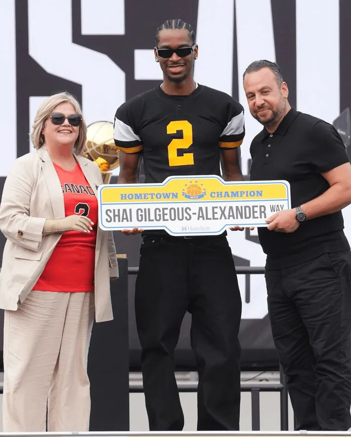 俄克拉荷马球星谢伊-吉尔杰斯-亚历山大回到家乡城市加拿大安大略省汉密尔顿市,展示