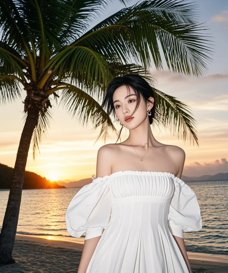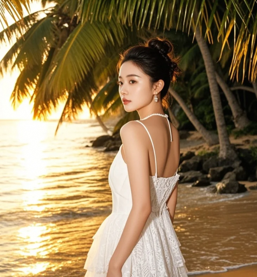 她与椰树,共享这被夕阳镀金的宁静