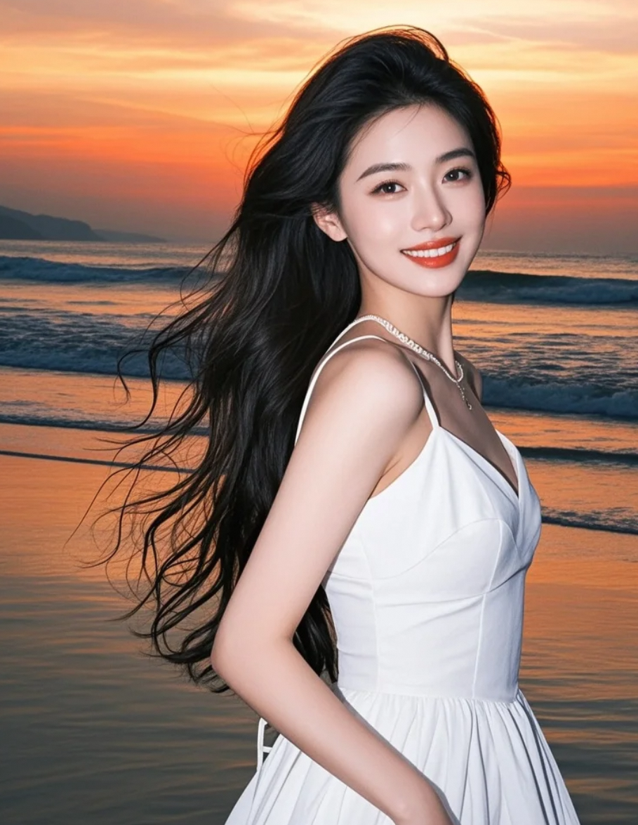 裙袂飘飘,仿佛要随晚霞飞向天际