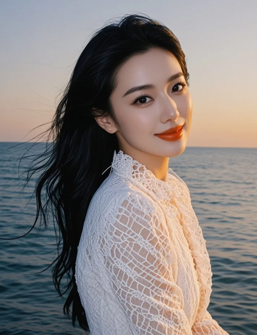 裙袂飘飘,仿佛要随晚霞飞向天际