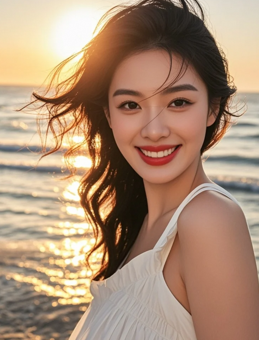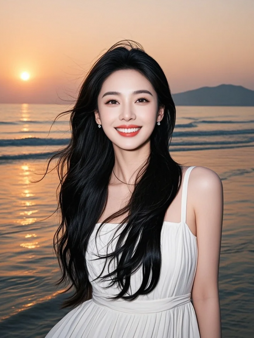 裙袂飘飘,仿佛要随晚霞飞向天际