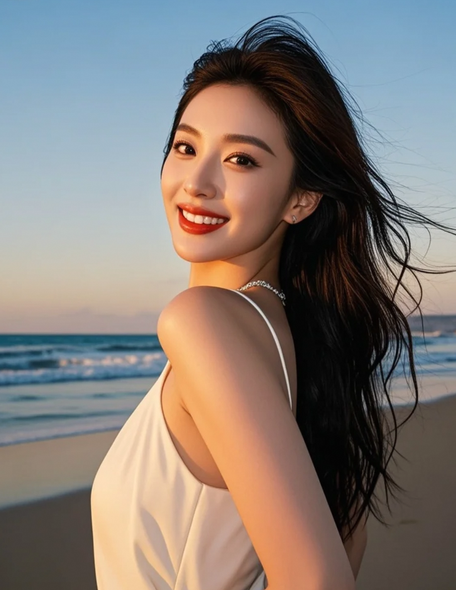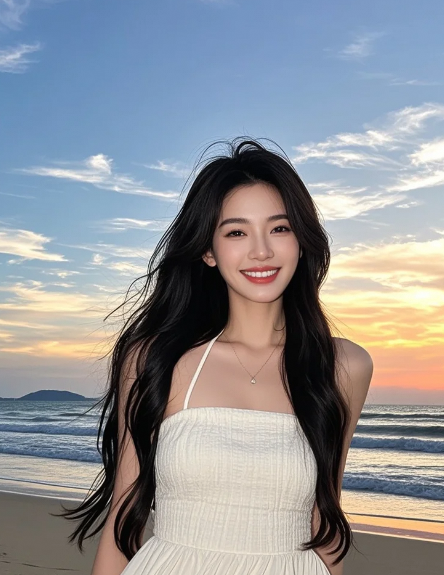 阳光、沙滩、海浪、裙摆,和一个灿烂的笑