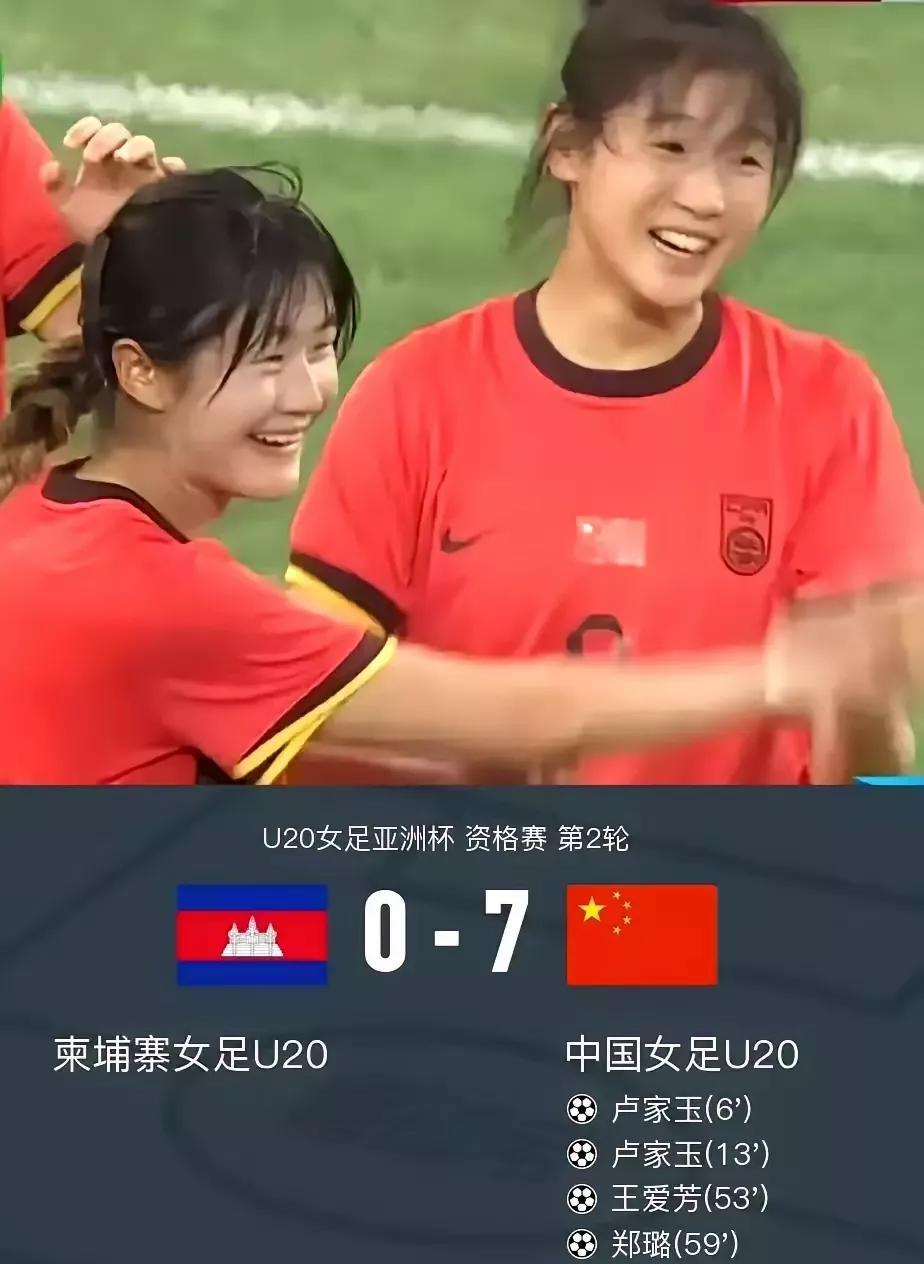 银川球迷是幸福的 何时男足也这么猛一把 女足U20亚洲杯预选赛E组比赛在银川举办,中国、叙利亚、柬埔寨、黎巴嫩四支球队参加。最后,中国女足U20队三战全胜,以小组第一的成绩晋级明年在泰国举办的女足U20亚洲杯决赛。 女足三场比赛,先后6-0战胜第一个西亚对手叙利亚队,据传叙利亚队在北京机场转机时竟然晚上谁在机场大厅里过的夜,多多少少是会影响比赛状态的。对于战火中的一支女足,战力还是差距太大,被中国女足6-0斩落马下。 第二个对手柬埔寨队,中国队凭借身高优势对付身材矮小的对手,那就是以大欺小的节奏,最后7-0痛击对手,以至于对方守门员都被打哭了。 第三个对手是黎巴嫩队,中国队越打越兴奋,比分再创新高,8-0拿下对手。 球队的当家明星射手卢家玉,开始上演精彩个人秀。第27分钟,她先是在面对两名防守球员夹击时,沉着应对,成功打进全场比赛个人首球,帮助中国队继续扩大比分优势;仅10分钟后,接到队友的右路传中后,她又冷静头球建功,实现梅开二度;下半场69分钟,她不负众望上演帽子戏法。 其他队员郑璐、刘玲、张怡倩、肖亚飞、王爱芳均有进球入账的情况下,全场比赛狂轰8球,轻松击败对手。 三场比赛,除了打进21粒进球,更是零封对手,攻得上守的住,这样一支年轻球队,给银川球迷贡献了三场精彩的比赛。 银川球迷也很有眼福,能够目睹中国女足这么多的进球,不管对手水平如何,就这21个进球,也确是一件幸福的事。 何时我们的男足,也有这样靓丽的表现,让现场球迷嗨一把? #国足# #u20女足# #黎巴嫩女足#