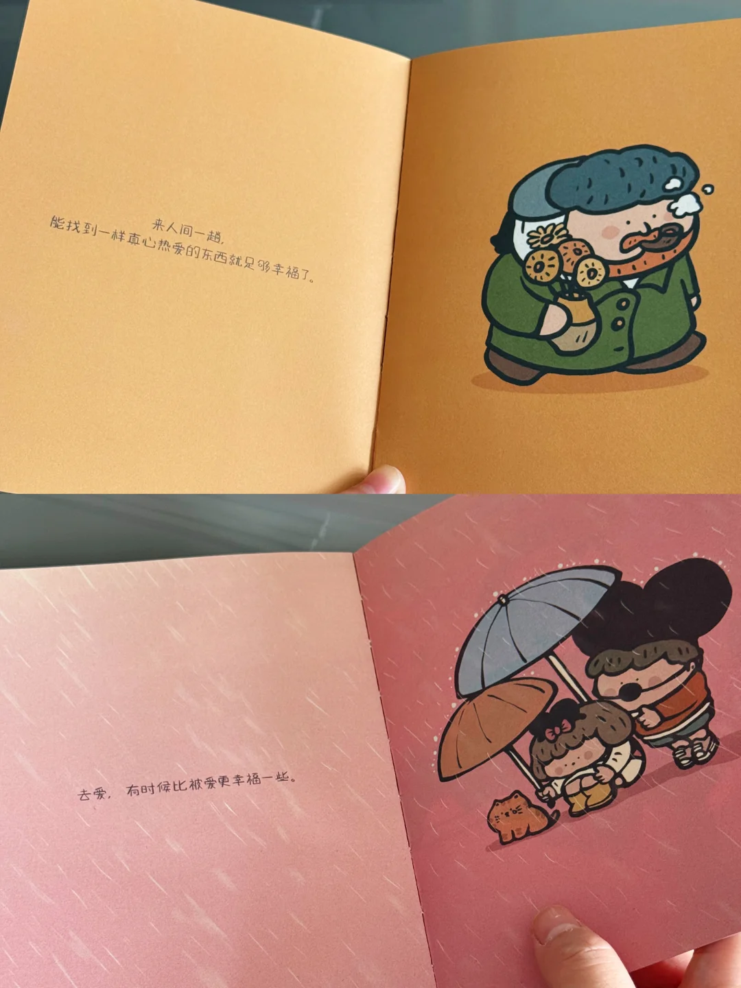 这本书里的漫画特别特别可爱,感觉每一页都像一颗微型糖果!当你什么都做不下去感觉生活百无聊赖时,看这本书会觉得心理暖暖的。书中以四季为主题,每页一幅可爱小画和一句暖心话语,既温暖又有力量。