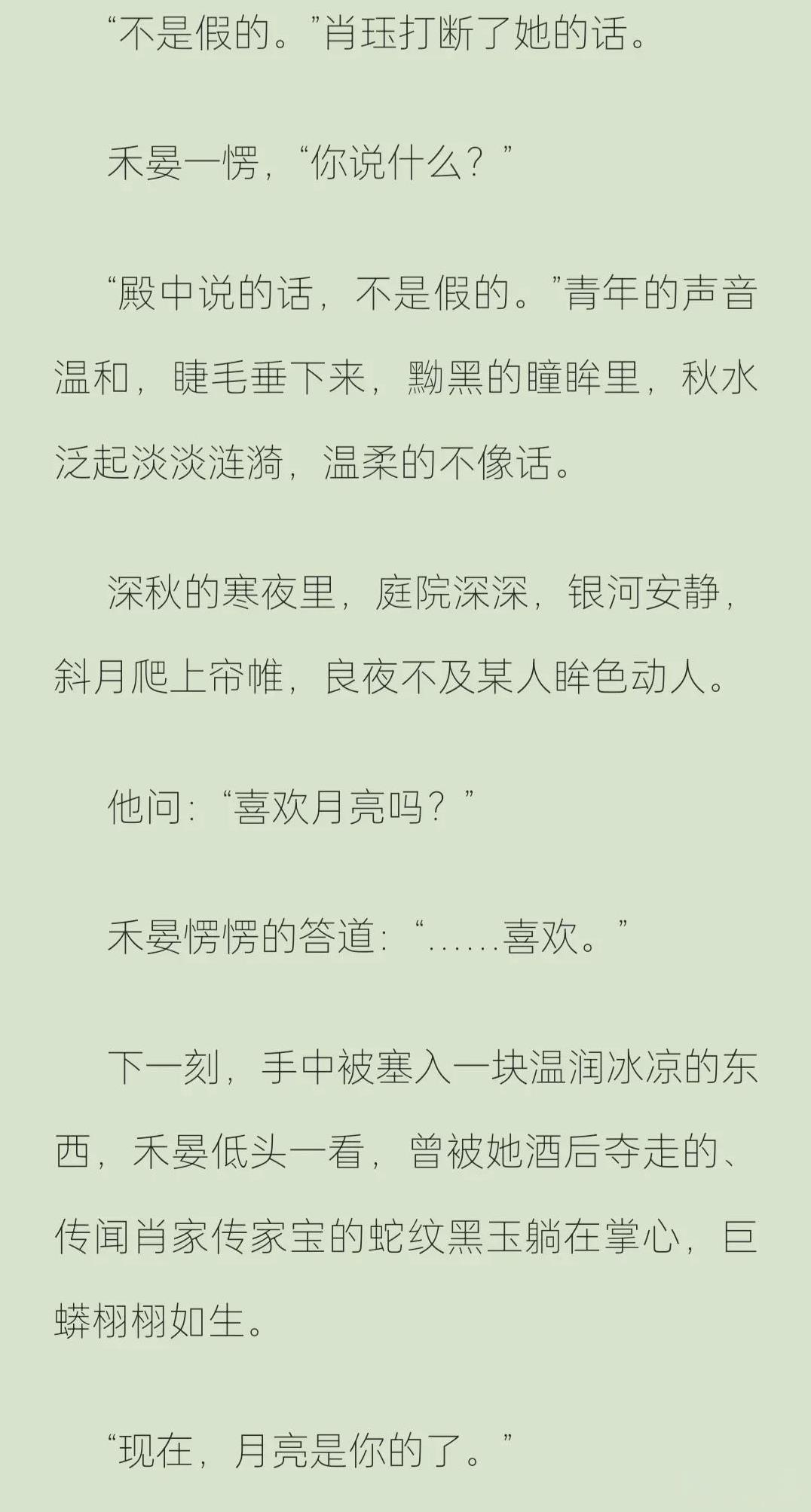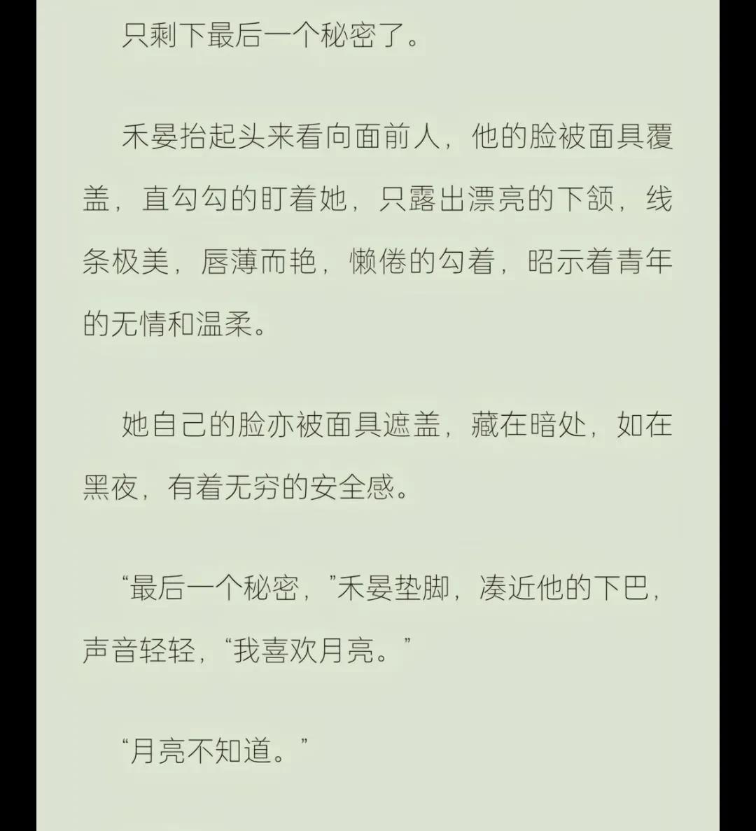 《锦月如歌》 禾晏对肖珏说的最后一个秘密 是关于月亮的,只见她垫起脚尖凑近他“我喜欢月亮……月亮不知道” 没看原著之前我也不晓得她说这话什么意思 只知道她说过无数次月亮 记得她眼瞎的时候遇见肖珏 都要问问今晚的月亮当时以为她是没话找话说 现在看来月亮在她心中不只是月亮 看了原著之后才知道,原来月亮是指肖珏啊,所以禾晏无数次的说喜欢,是真话 #我的宝藏兴趣#