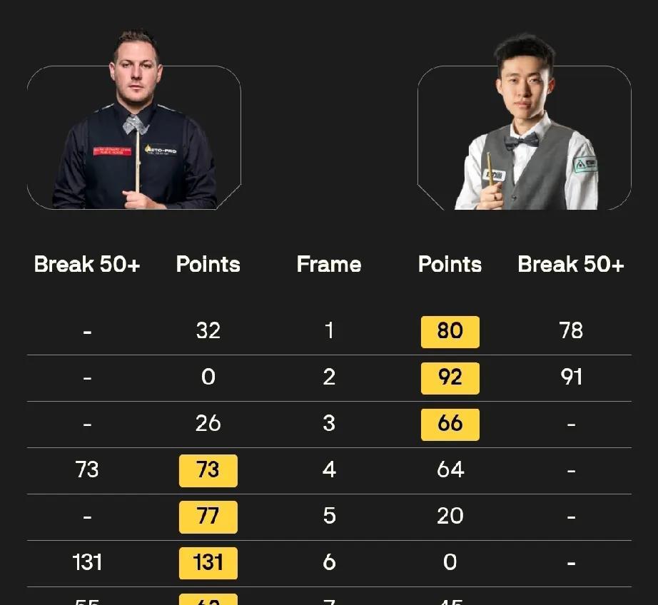 名副其实的“逆转王”常冰玉! 北京时间8月13日凌晨,斯诺克沙特大师赛16强全部产生,卫冕冠军贾德·特鲁姆普出局,75三杰之一的约翰·希金斯被淘汰。 中国军团先抑后扬,8名球员出场,4人晋级16强。赵心童零封霍尔沃斯、丁俊晖5-2淘汰马奎尔、斯佳辉5-3战胜吴宜泽、常冰玉5-4绝杀马克·艾伦。 常冰玉,世界排名第104位,五轮比赛,四场逆转获胜,不折不扣的大心脏“逆转王”! 首轮对阵傅家俊,2-3落后,4-3获胜。 次轮对阵唐纳森,1-3落后,4-3获胜。 第三轮对阵维尔斯,决胜局0-63落后,67-63逆转4-3获胜。 第四轮对阵大卫·吉尔伯特,5-3获胜。 第五轮对阵马克·艾伦,3-1领先,被艾伦4-3反超,最终以5-4逆转获胜。 第六轮,常冰玉挑战“火箭”罗尼·奥沙利文,比赛在14日凌晨进行,11局6胜赛制。 希望常冰玉一路长虹,复刻赵心童的神迹!
