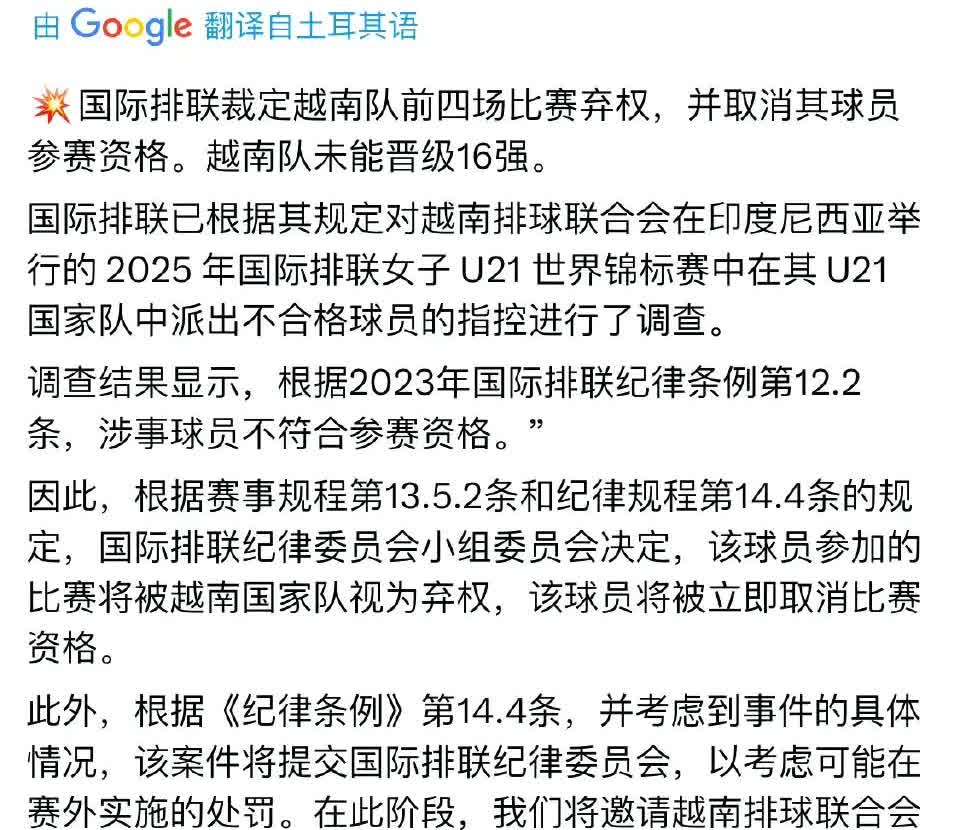 【越南女排被国际排联取消成绩】 真是滑天下之大稽啊!越南女排这下真的臭名远扬了