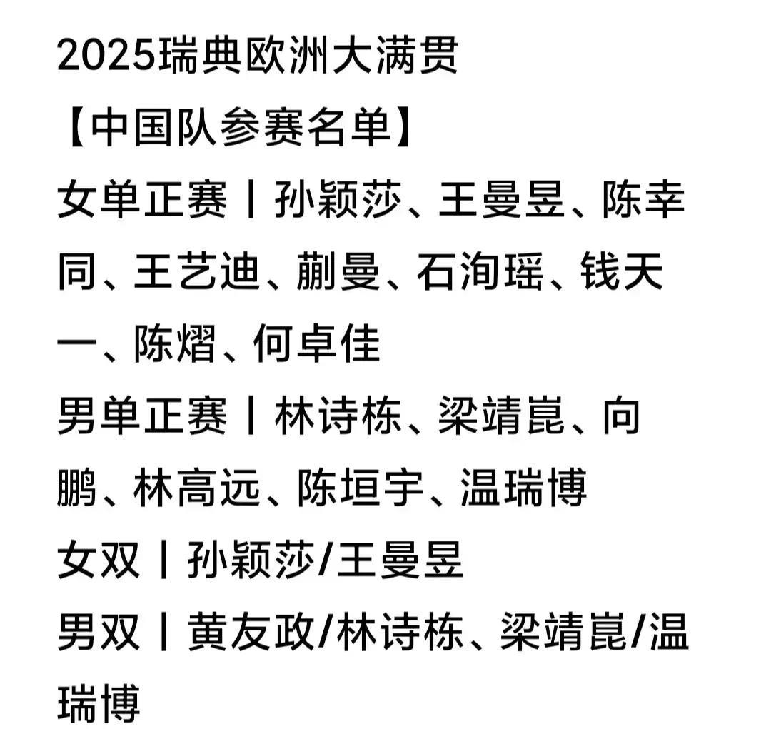 明天wtt欧洲大满贯开始了,为何国乒还没出发? 因为14日到16日, 这三天是资格赛, 国乒没人参加, 所以不需要早去! 而且瑞典条件有限, 欧洲大满贯一下去这么多运动员, 当地服务不一定能跟的上! 而且咱们运动员, 刚打完日本横滨冠军赛, 也需要休息一下! 这次王楚钦不去, 女乒依旧强大, 男乒大家不要抱有太大希望!