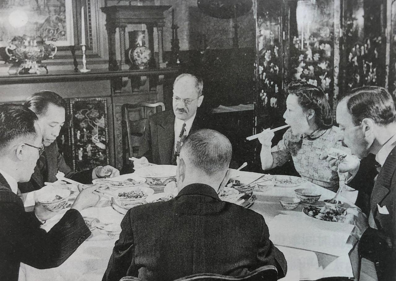 1941年驻美使馆午餐,左下角顺时针起胡适、刘锴、使馆法律顾问也是胡适同班同学哈