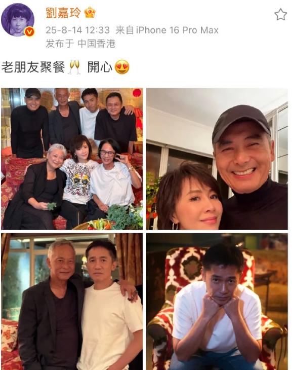 刘嘉玲分享老友相聚的画面,周润发等一众老朋友都在!看着照片里他们的笑容,真的感慨