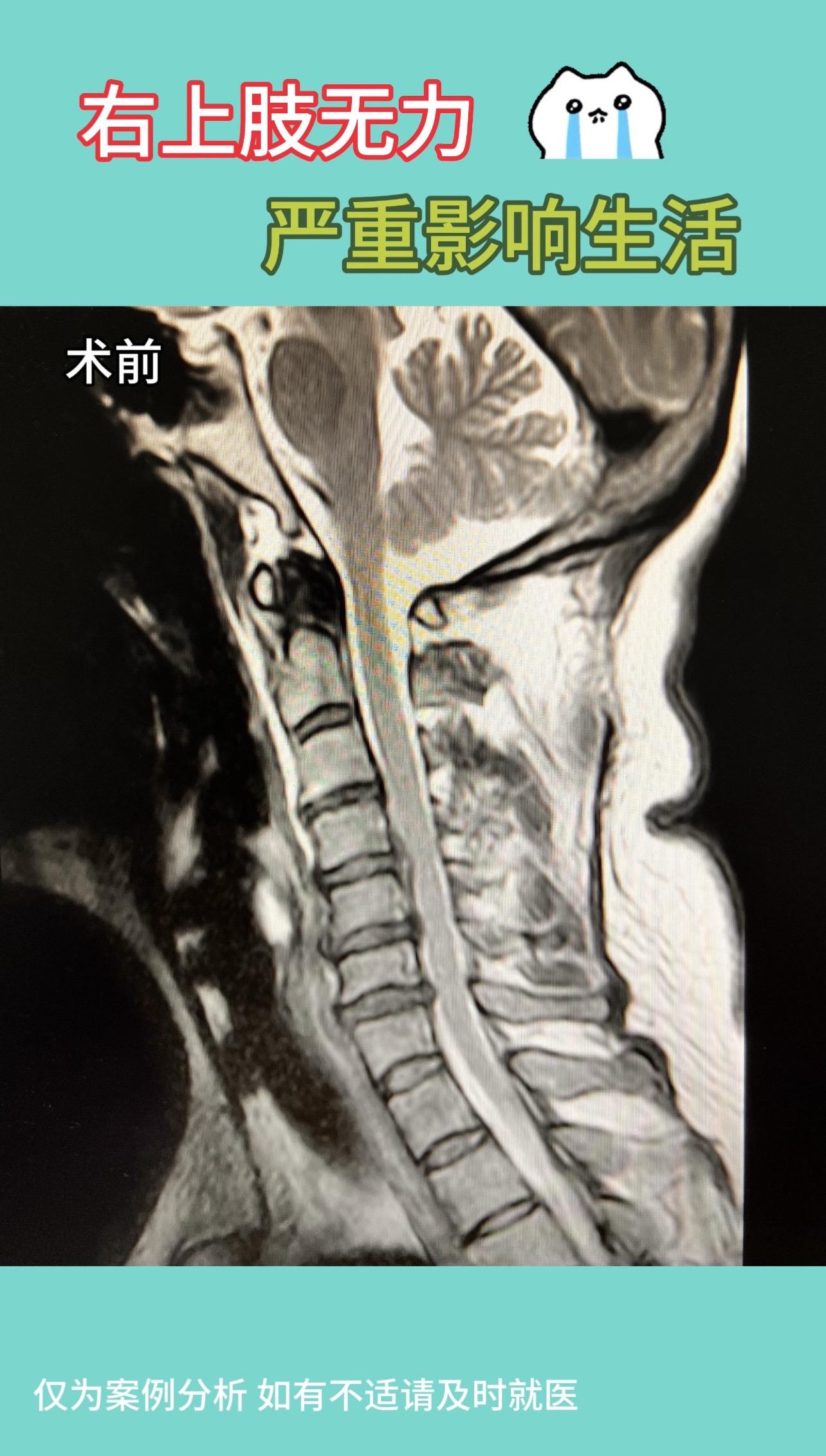 50多岁女性,右上肢无力2月,刷牙不能,持筷不能。严重影响生活。术后1...