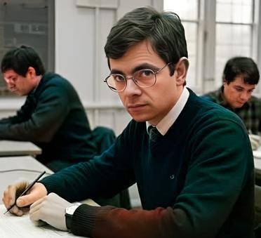 这位戴着眼镜,一本正经的年轻男子正是后来大名鼎鼎的“憨豆先生”罗温·阿特金森。1974年,十九岁的罗温在纽卡斯尔大学电气工程专业就读。从此学校毕业后,罗温又考入著名的牛津大学。在这里,他喜欢上了表演滑稽小品,并受到同学们的热烈欢迎。 毕业三年后,罗文开始向喜剧方向发展,并成为喜剧演员。从1979年到1990年,罗温一直在喜剧中不断摸索并有了很大的发展。因此,当1990年罗温主演的《憨豆先生》在英国首播后,受到极大的关注,并超过了两千万的观众。 之后,罗温虽然演过许多喜剧,但观众依然深深地记得他憨豆先生的幽默形象。憨豆先生的幽默形象无人可以替代。因此,罗温又相继主演了多部与憨豆有关的影视剧。这也使得他成为英国名副其实的国宝级人物。