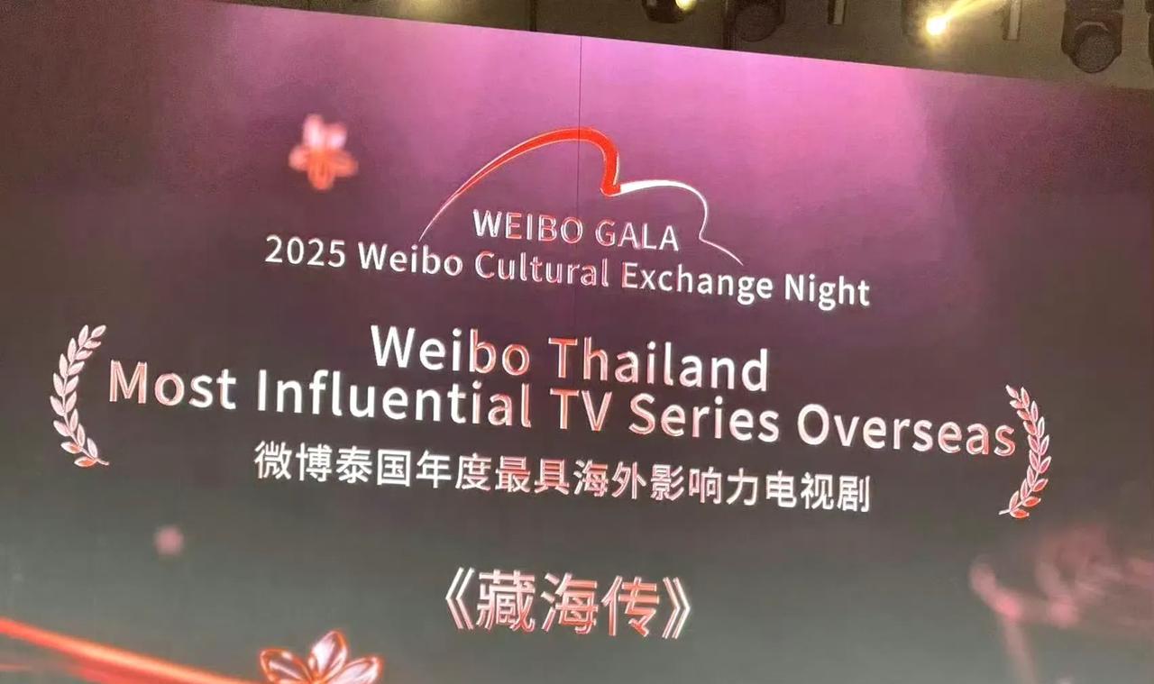 《藏海传》拿下了第一个奖项,微博泰国年度最具海外影响力电视剧,播放视频的时候现场